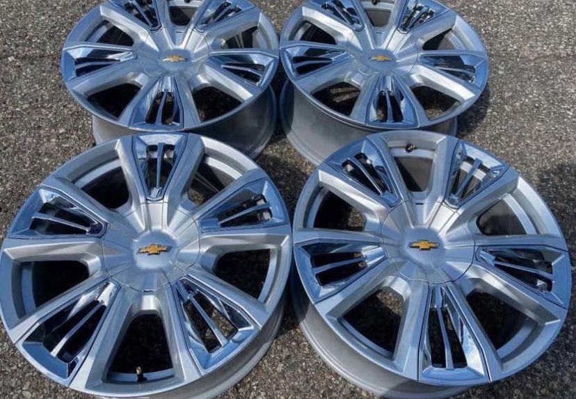 $1,299 For All Four Rims! We Finance Interest Free No Credit Needed Financing 22" Factory OEM Wheels Set! Will Fit 1(contact info removed) GM Trucks All Trims All Models Silver Finish With Chrome Inserts! All Caps Included. 6X5.5 6X139 6-Lug Bolt Pattern Set Of Four! Used & New Tire Sets Available Tire Sensors Available Cadillac Escalade GMC Yukon Denali Sierra Chevrolet Silverado Tahoe Suburban Chevy Avalanche 2019+ Dodge Ram 6-Lug Message To Verify Fitment. Shipping Available We Finance! Great Price Factory OEM New Takeoffs!