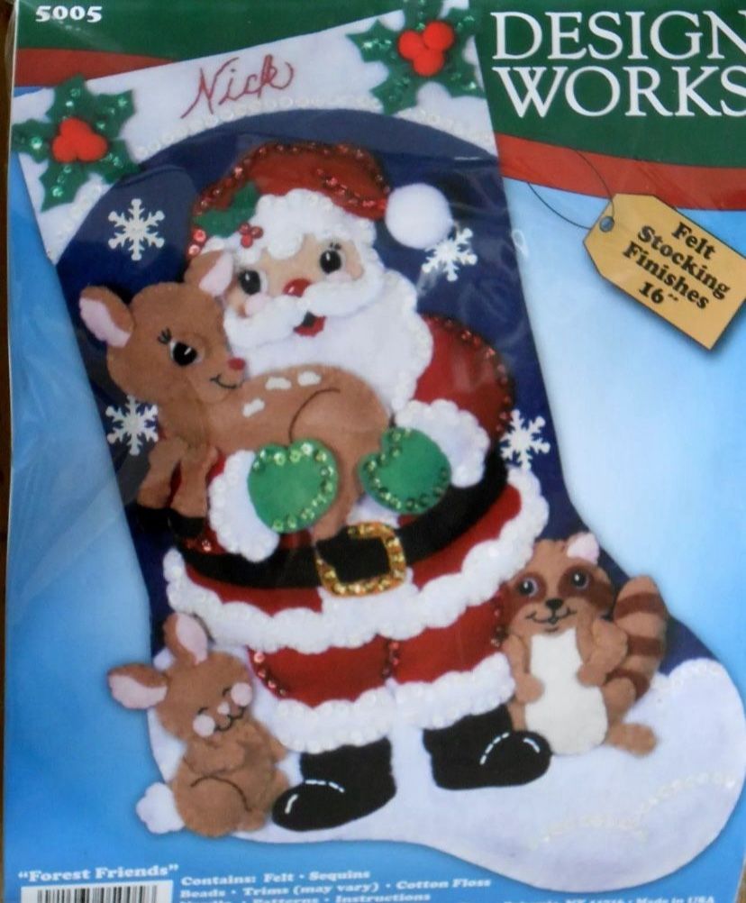 #5005 DESIGN WORKS "FOREST FRIENDS" SANTA WILDLIFE FELT STOCKING KIT -NIP!