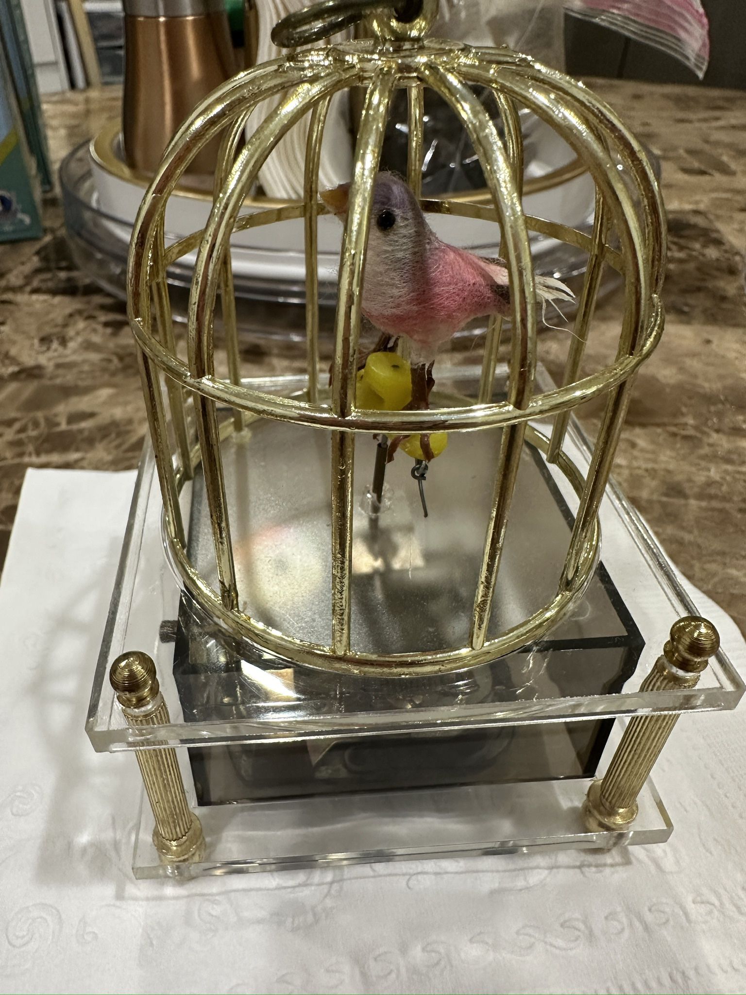 Vintage musical box , bird cage , made in Hong Kong