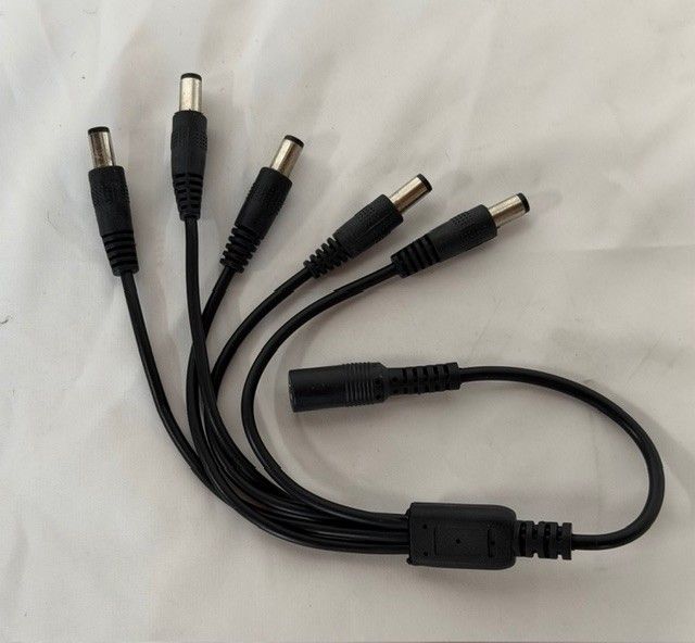 5-way DC power splitter cable, designed to allow a single power adapter to supply power to multiple devices simultaneously