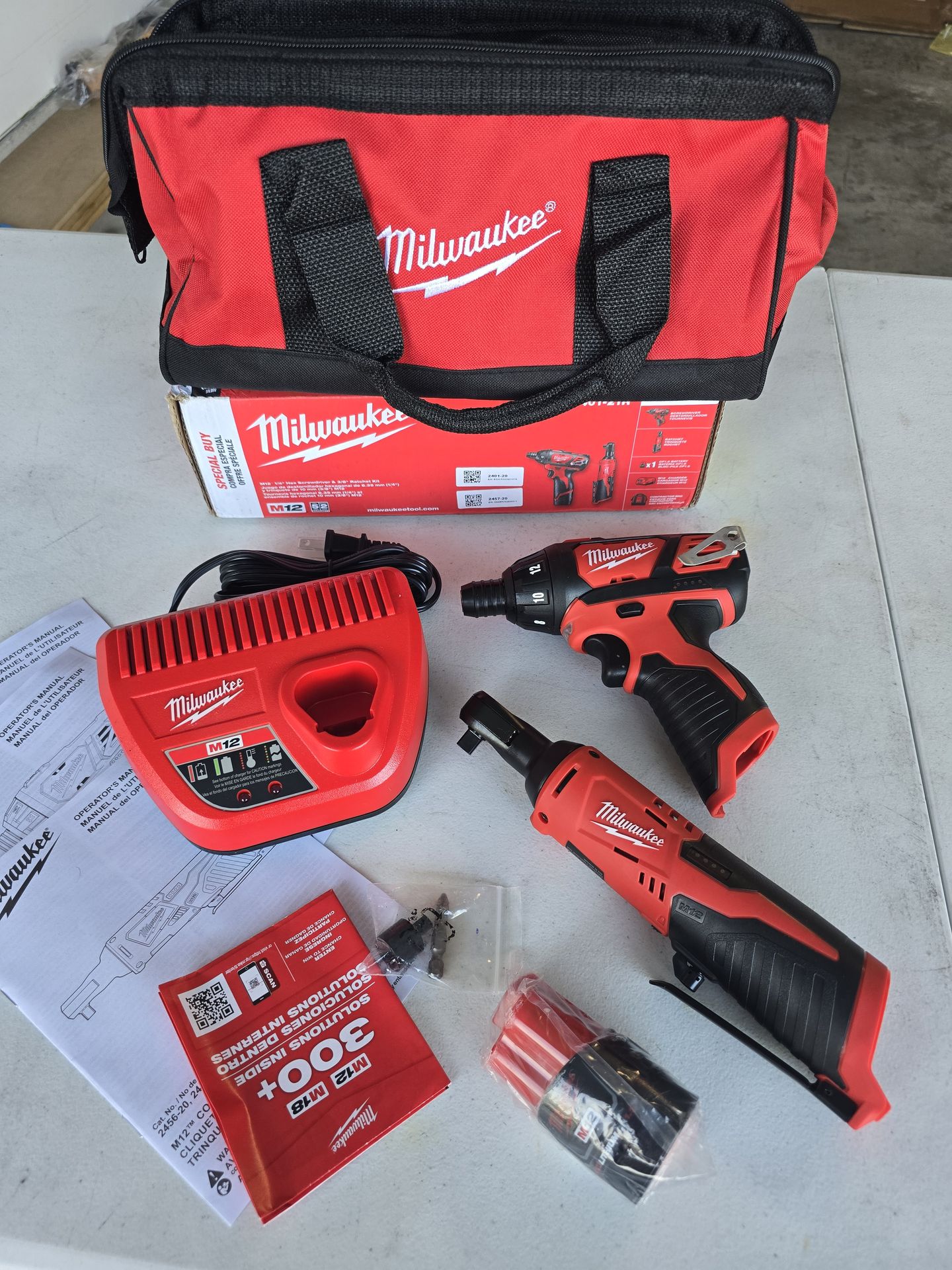 🔥$160 NO NEGOTIABLE🔥 Milwaukee M12 12V Cordless 1/4 in. Hex Screwdriver and 1/4 in. Ratchet Combo Kit (2-Tool)