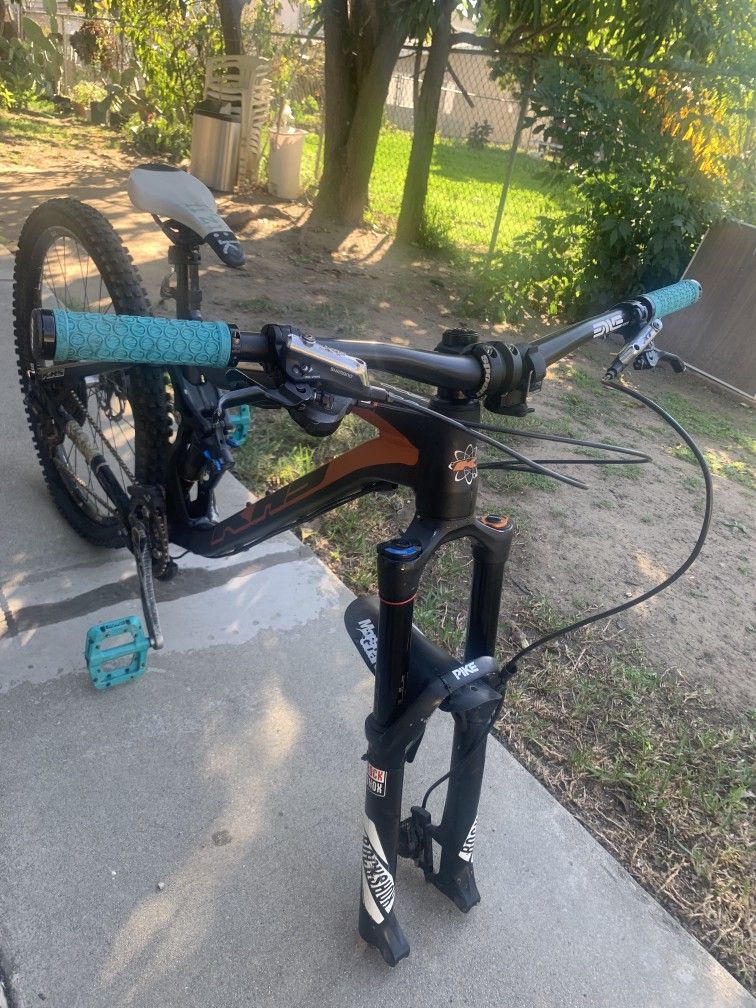 KHS SixFifty 7200 mountain bike A 27.5″ aluminum frame full suspension enduro bike with upper mid-range components. Frame: Aluminum Suspension: Full, 160 / 160mm Fork: RockShox Pike RC Shock: RockShox Monarch RT Wheels: 27.5″ Aluminum Drivetrain: 1 × 11 Groupset: GX Brakes: Shimano SLX Hydraulic Disc Seatpost: Dropper Notes: Used Condition and will need to buy a tire (approx go for $30) Everything works perfectly
