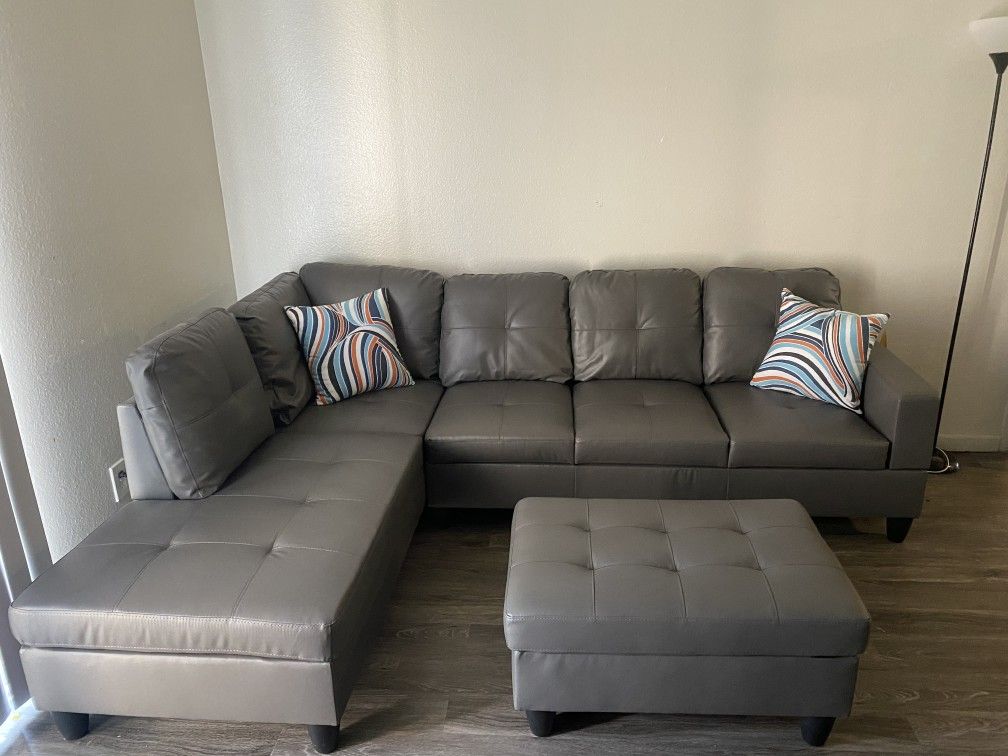 Dark Grey Sectional Couch Set w/ Ottoman (Left Chaise) 🔥ON SALE🔥 👍FREE FINANCING AVAILABLE❗NO CREDIT CHECK❗