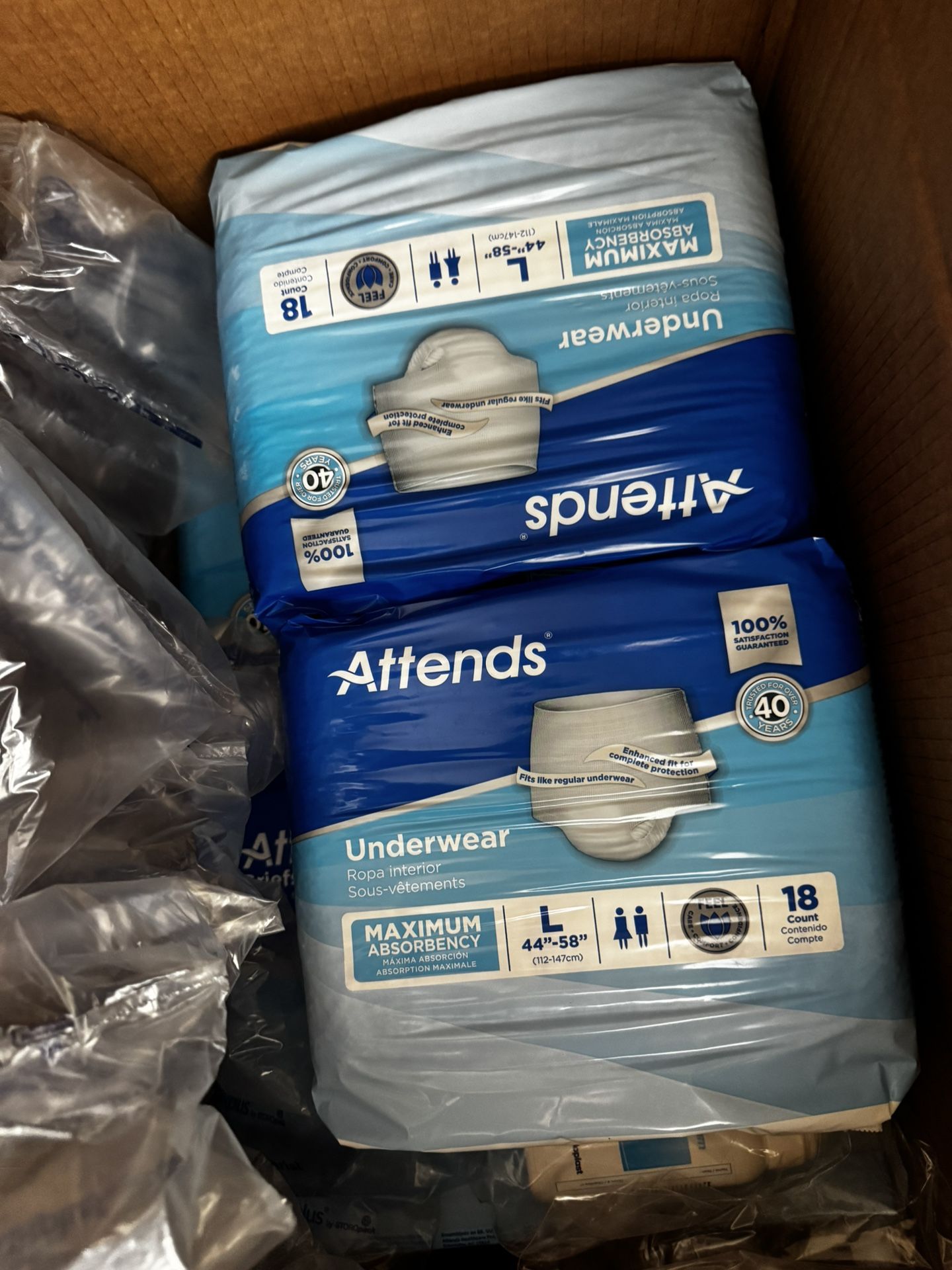 Comida para tubo G/ G-tube food and syringes Pañales para adulto, talla grande/ Adult diapers size L Mouth swabs Baño portátil/ Folding commode
