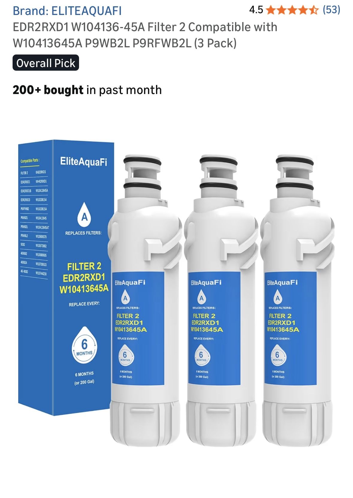 EDR2RXD1 W104136-45A Filter 2 Compatible with W10413645A P9WB2L P9RFWB2L (3 Pack