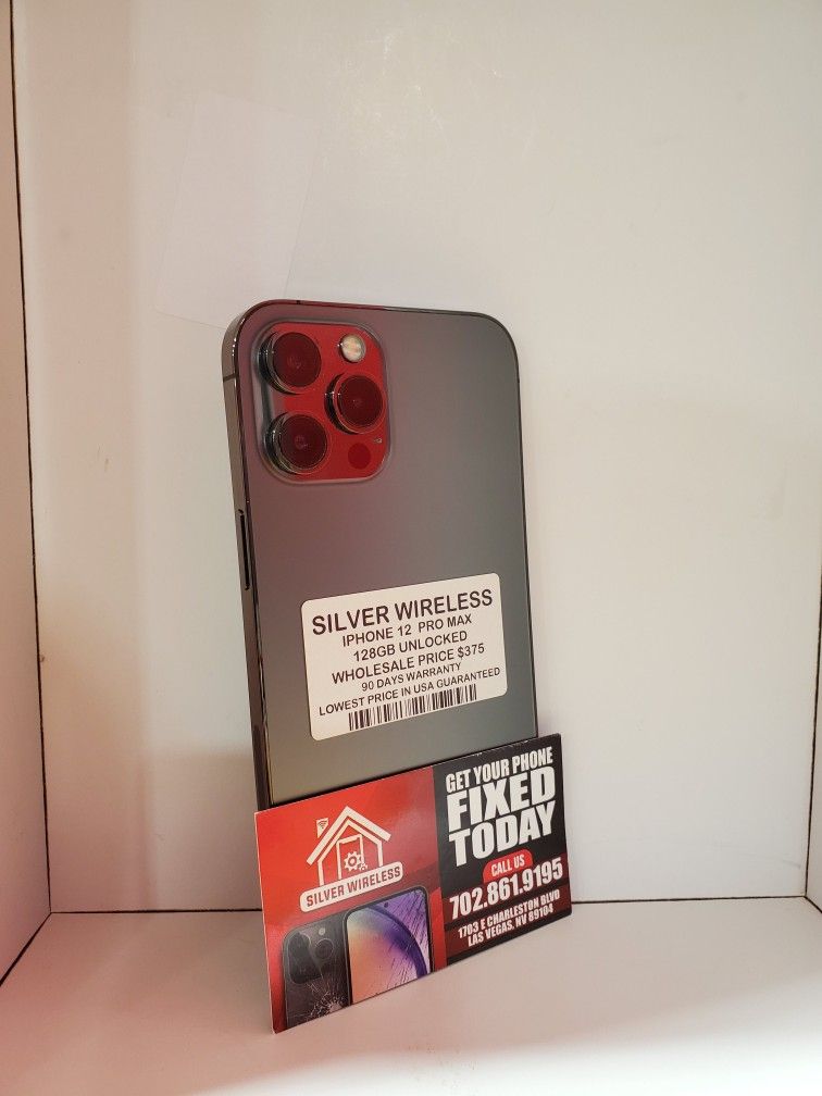 IPHONE 12 PRO MAX PERFECT CONDITION 128GB FACTORY UNLOCKED FINANCE AVAILABLE 50 DOWN PAYMENT 90 DAYS WARRANTY 1703 E CHARLESTON BLVD LAS VEGAS NV 89104