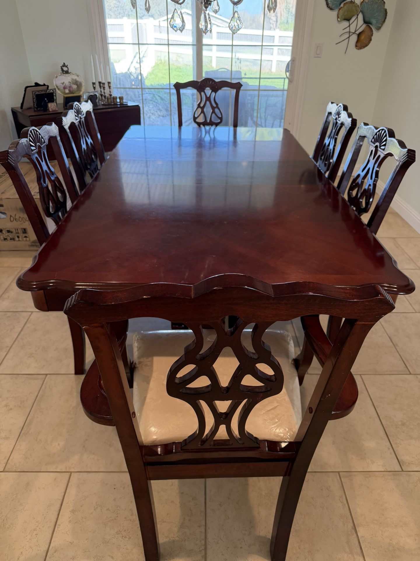 Nice dining table with six chairs.