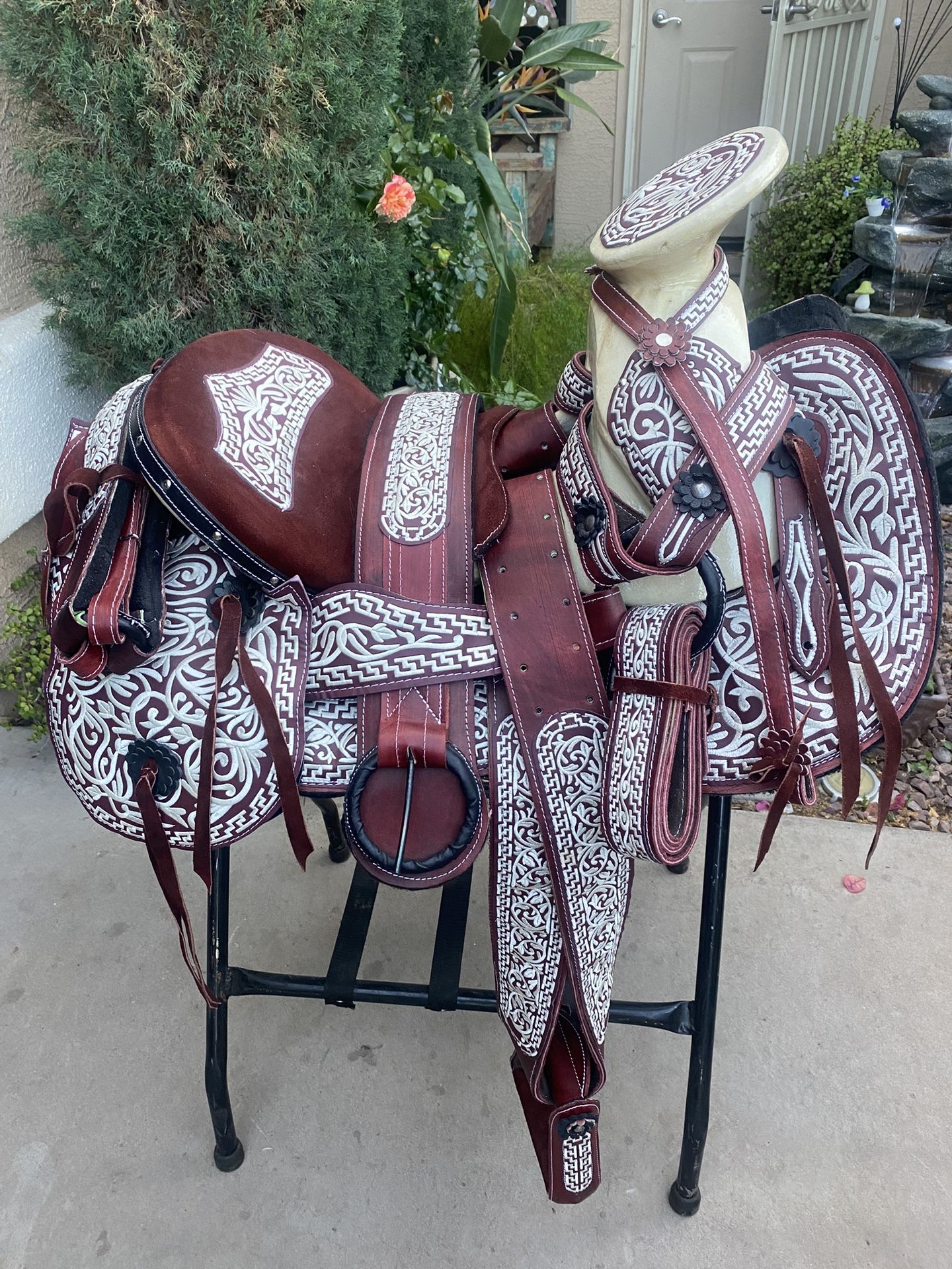 Montura charra Excelente calidad Equipada Pechera corriones para espuelas…….. Nueva Precio firme 87 av y lower buckeye