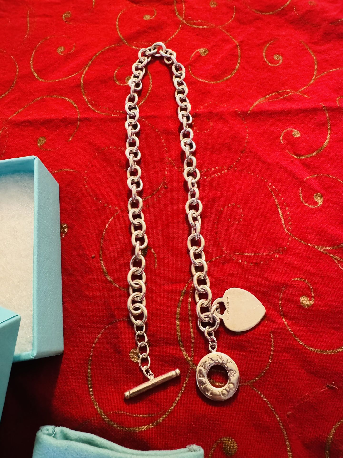 Tiffany &Co. Heart Tag Toggle Silver Necklace - In Great Condition With Box & Pouch.