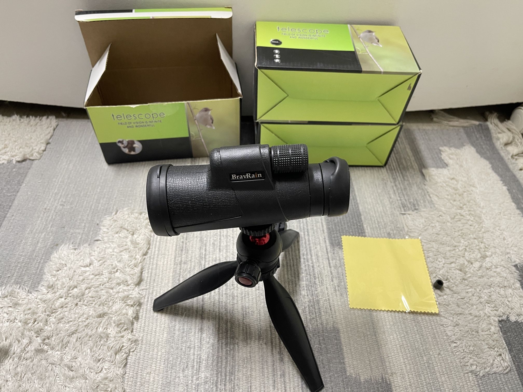 Brand new. 3pcs/$50 Have one telescope with some exterior damage (does not affect functionality) Field of view: 1000m Size: 6.9in x 2.8in Weight: 340g