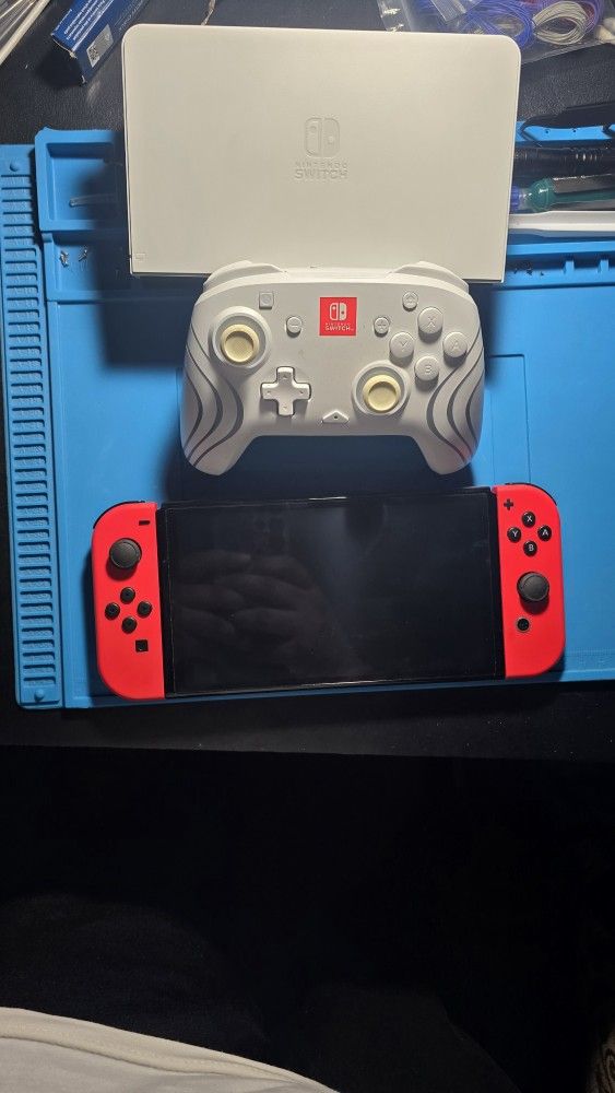 Left joycon stick does not work, comes with a wireless controller Dock + charger included No Games