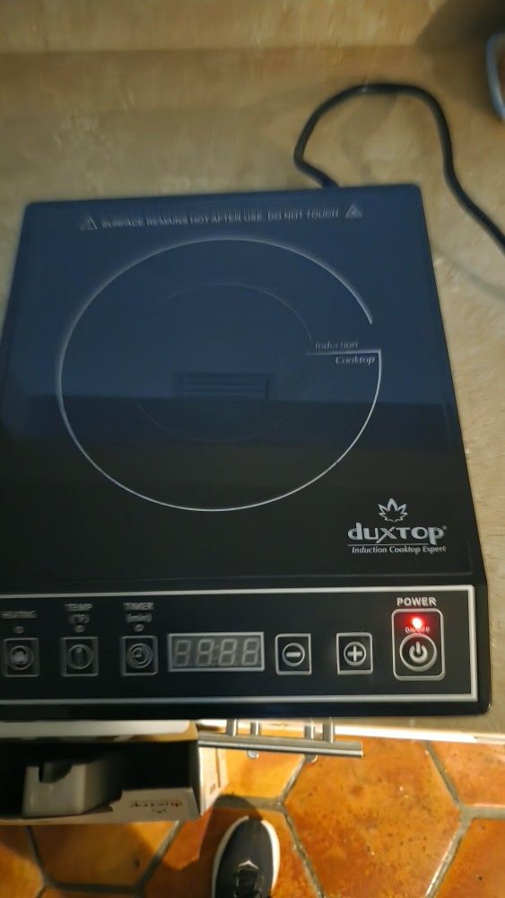 induction cooktop is lightweight and portable, making it suitable for various settings like dorm rooms, RVs, and home kitchens. Efficient Performance: Offers 20 power levels (100W-1800W) and 20 temperature settings (100°F-460°F), boasting 83% energy efficiency for faster cooking. Easy Maintenance: Features an oversized glass cooktop that is easy to clean with a damp towel, as food does not burn onto the surface. Intuitive Controls: Equipped with an angled control panel and a large display screen for easy viewing and digital timer with 1-minute increments up to 170 minutes. Cookware Compatibility: Requires induction-ready cookware with a minimum 5-inch magnetic bottom; includes auto-pan detection that shuts off the unit if no suitable cookware is present. Safety Features: Built to North American electrical standards (120V 15 amp), ETL listed, and includes diagnostic error messages and voltage warning systems. Note: In order to use this and any other induction cooker, you need to have the right kind of cookware. Induction itself is a noiseless process, however there may be high pitch sound from clad cookware, the base of which has multiple layers of metals sandwiched together. 20 power levels from 100W to 1800W; 20 temperature range from 100°F to 460°F; Digital control panel; Lightweight and compact for easy handling and storage; Built-in count-down digital timer with 1 min increments up to 170 minutes; The auto-pan detection will shut the unit off automatically after 60 seconds if no cookware is detected; Equipped with diagnostic error message system, Low and high voltage warning system; Compatible with Duxtop and other induction ready cookware such as cast aluminum enameled iron and steel, stainless steel with a magnetic bottom, or cast iron; Product Built to North American Electrical Standards, 120V 60Hz AC I used ony a cupl times. In excellent condition I purchased it for $114.00 plus tax n shipping Selling for $63.00 It is like brand new Im selling many items. Follow me and or Friend me. I only sell quality items items I would purchase again if I needed. Local East Boca pick up