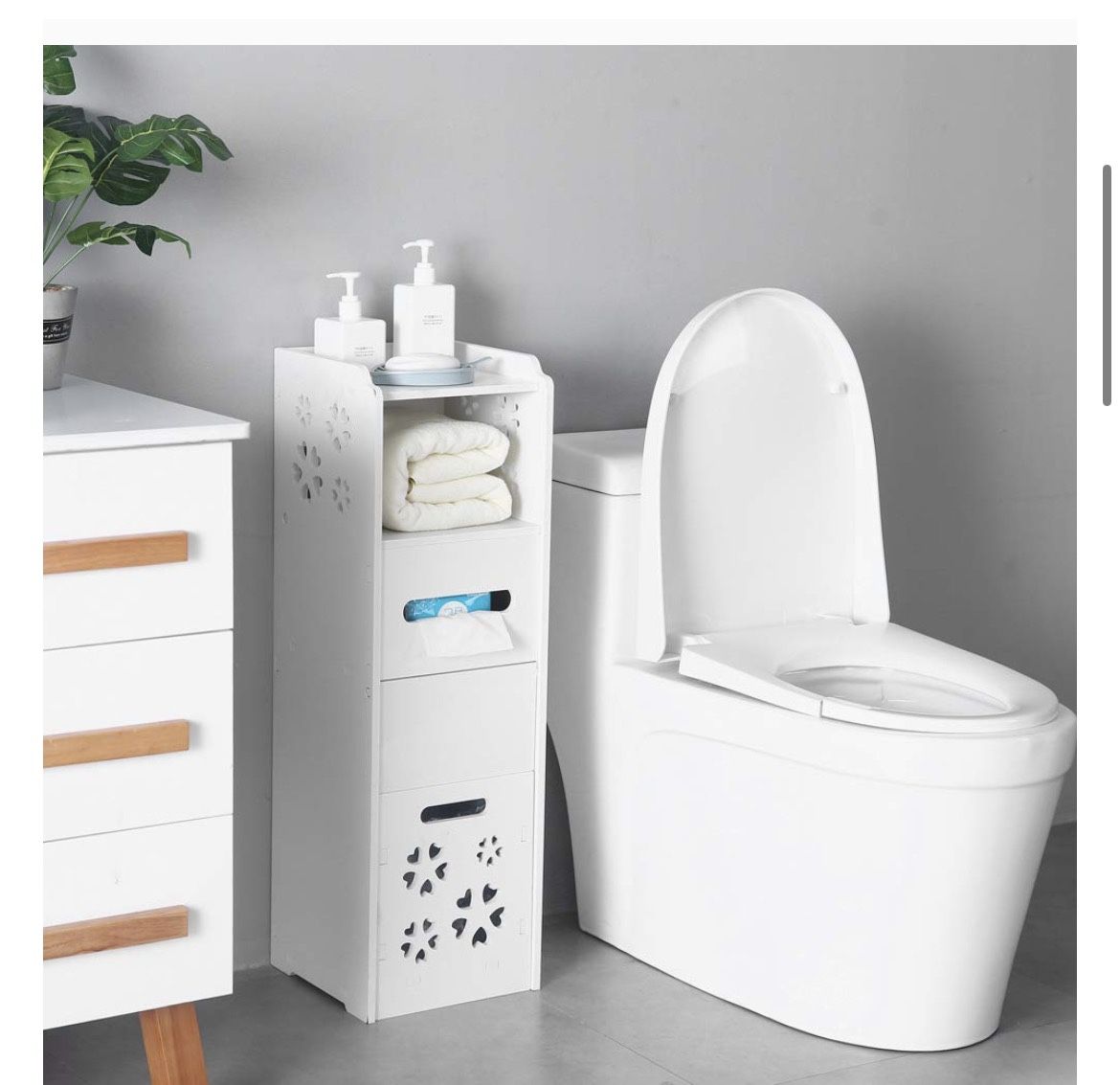 New in box Not assembled Hablo español 3 Layer Bathroom Storage Cabinet with Trash Can Tissue Box 25x25x80CM White Bathroom Decoratio