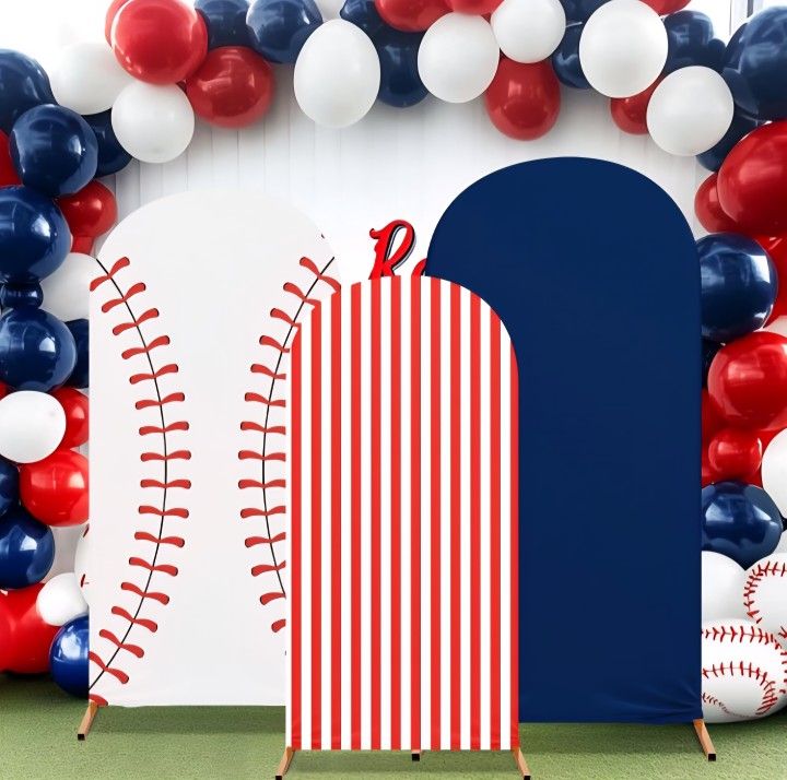 3 Set Baseball Theme Arch Backdrop Stand Covers Sport Background Arched Stretchy Fabric Backdrop Cover for Boys Birthday Baseball Party Decoration