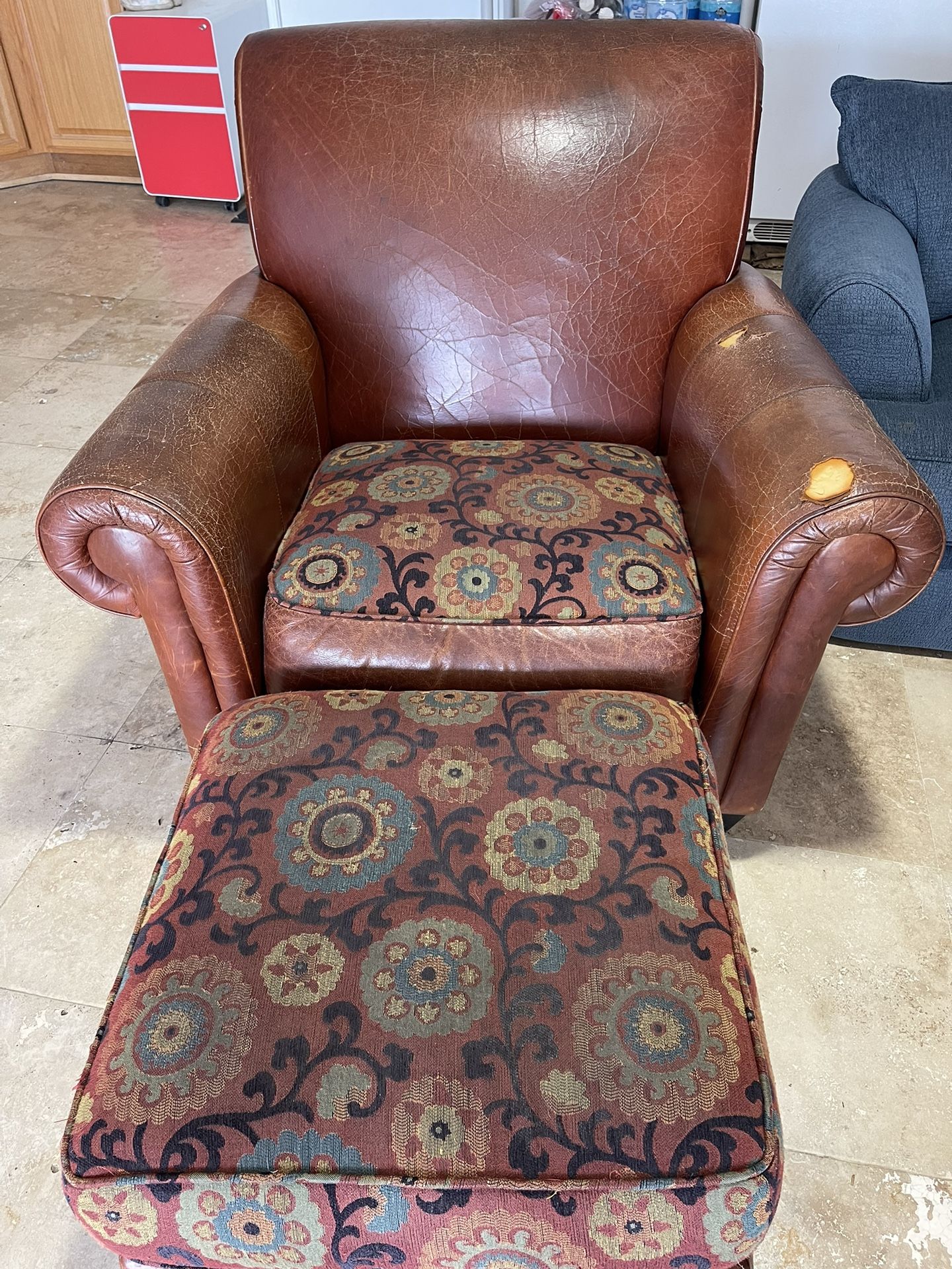 Leather and fabric Includes ottoman