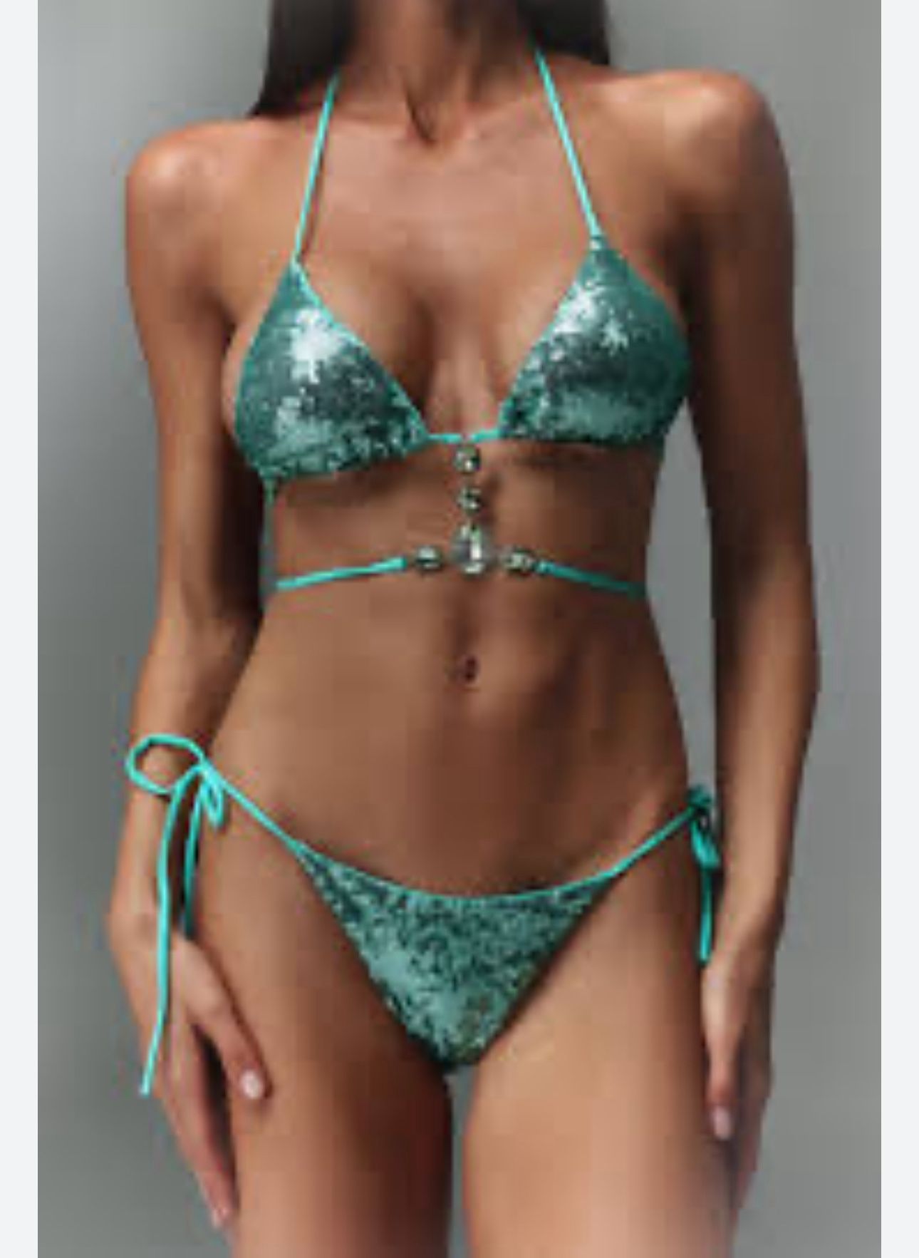 Halter Sleeveless Sequin Diamond Bikini