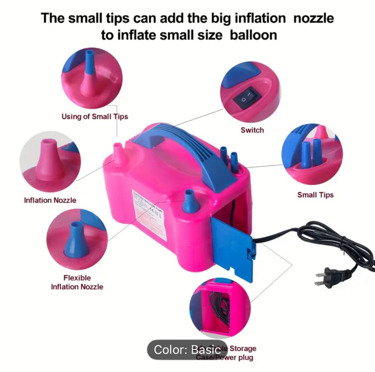 Electric Balloon Pump with Triple Inflation Ports - 3-in-1 Fast Inflator/Deflator for 260Q Foil Latex Balloons, Swimming Rings, Air Mattresses, Pool Floats - Plug & Play ( Plug) Semi- Air Pump for Parties, Inflatables & Helium