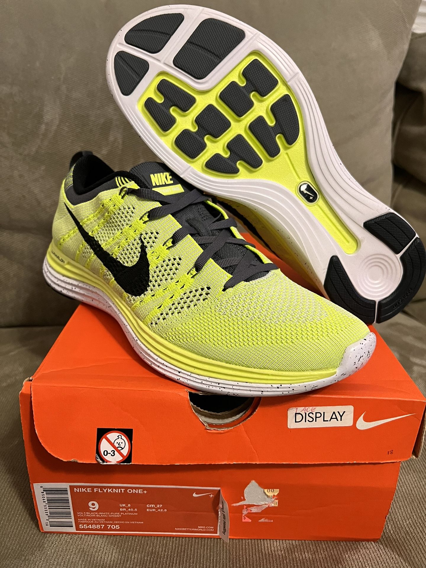 Brand New Nike Flyknit One Size 9 In Mens Volt Platinum. These were display shoes so they might have some stains on soles or dirt etc. 10 year old shoes, wear at your own risk! No returns! Asking $145