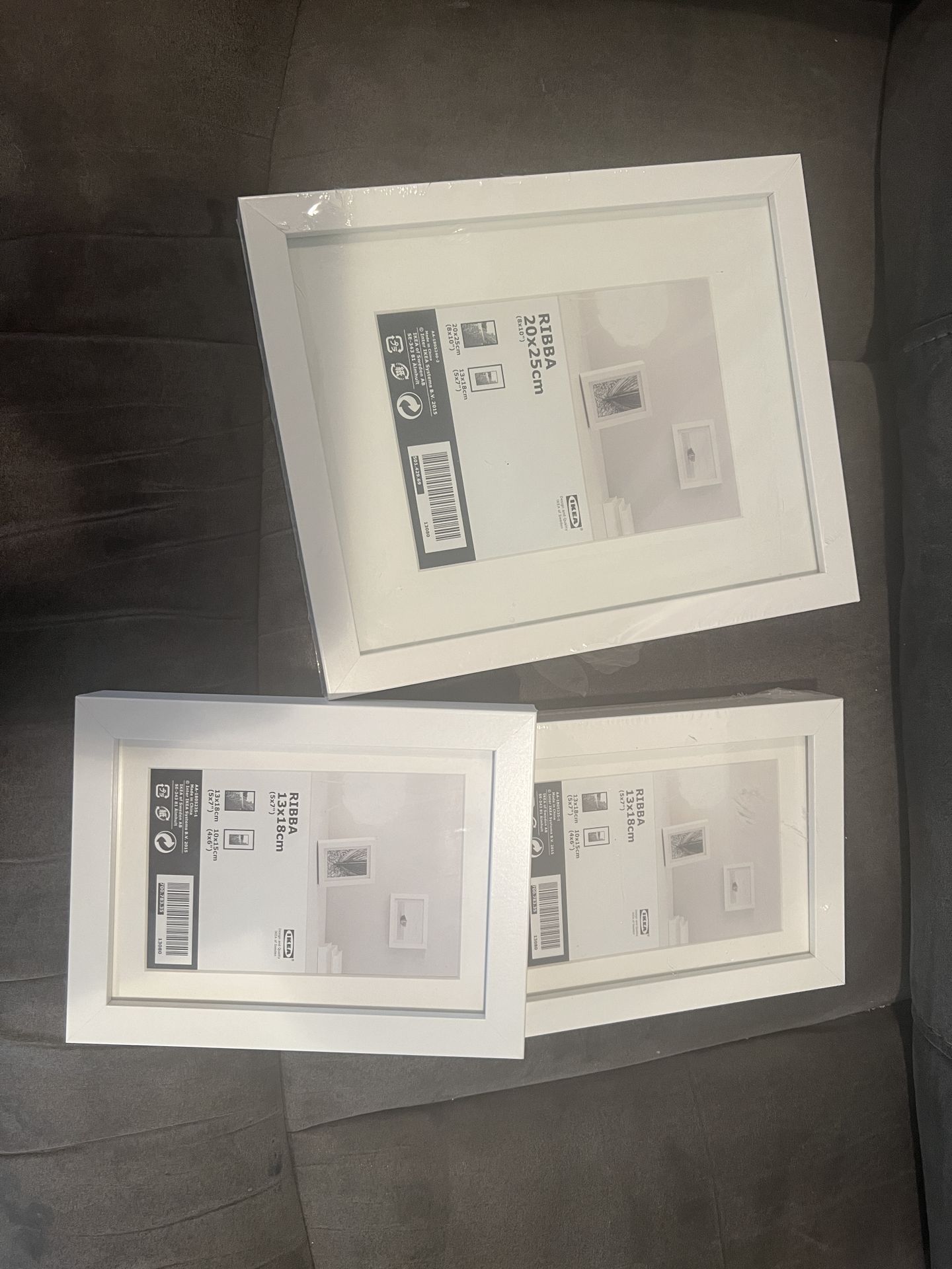 - [ ] Set of 3 IKEA Ribba Frame Whites brand new never used still in plastic cover 8x10, 5x7 and opened but not used 5x7 frames. $15