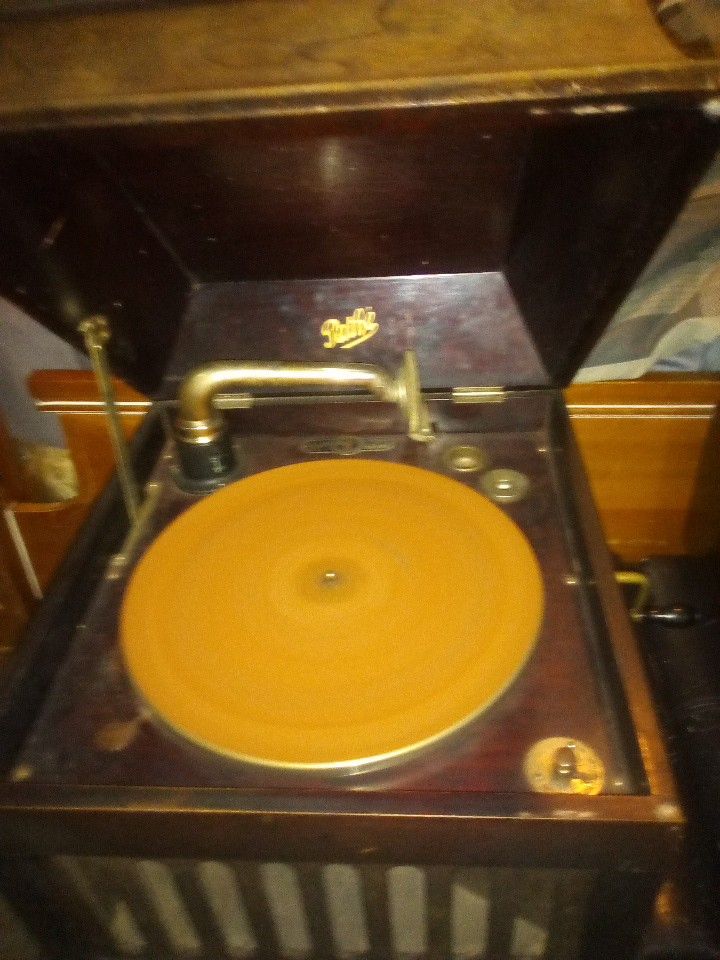 Wind up works, great condition. Pretty Shure it will play a period record, sapphire needle in it still