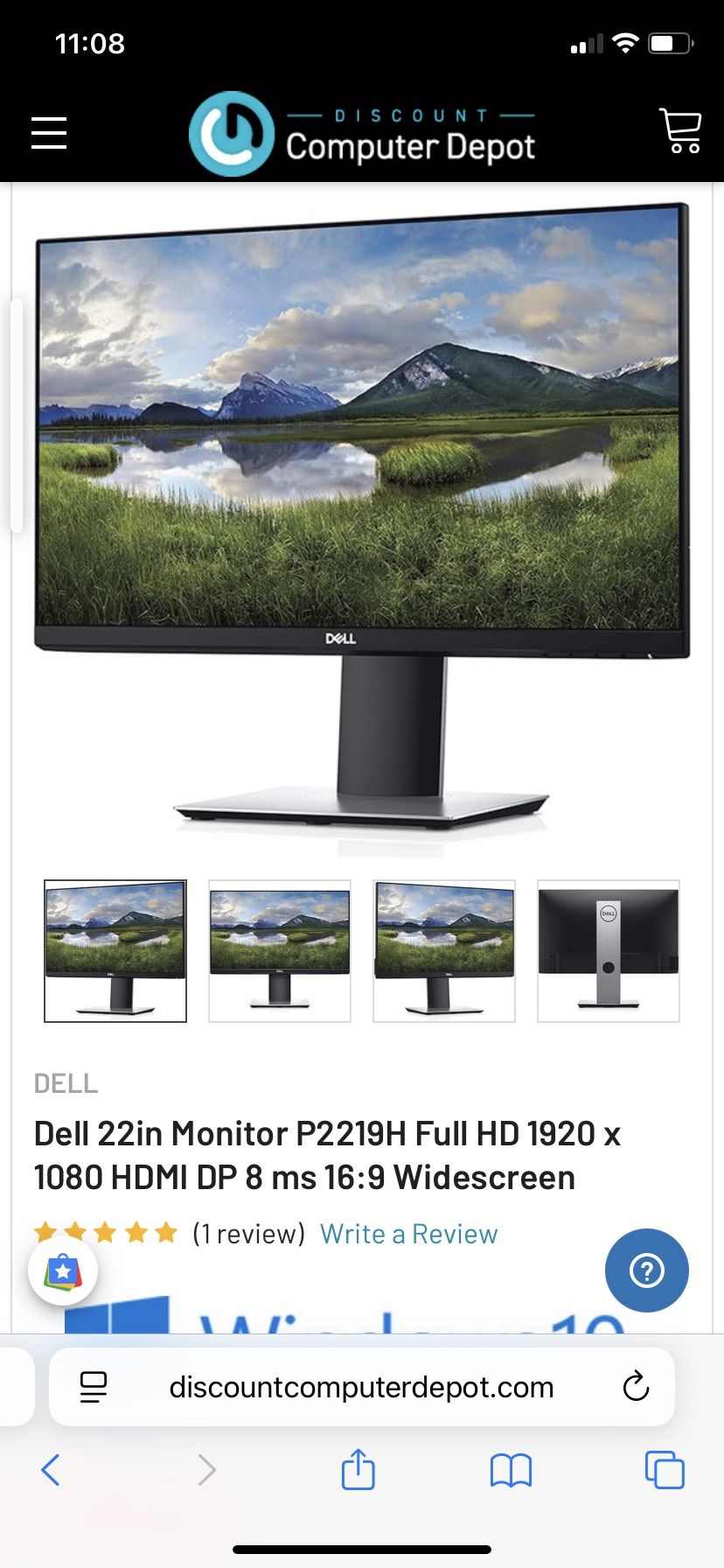 Dell 22in Monitor P2219H Full HD 1920 x 1080 HDMI DP 8 ms 16:9 Widescreen