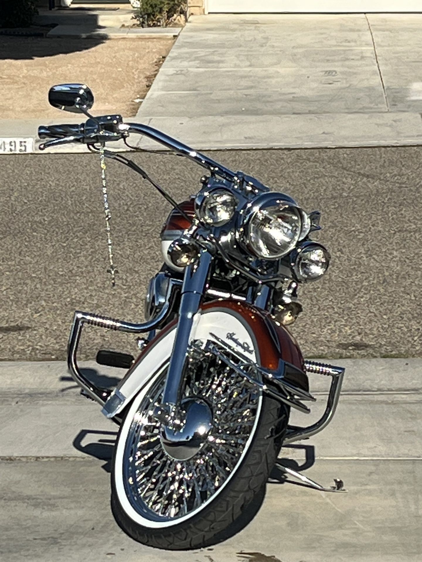 100th Anniversary Heritage Softail. Clean title 19k miles. House of Colors tangerine and pearl paint. Samson 36” exhaust, Cali Spoke wheels 21” & 16” with brand new white wall tires. Chrome all around. Possible trade for jeep JK for my kid. $10,000