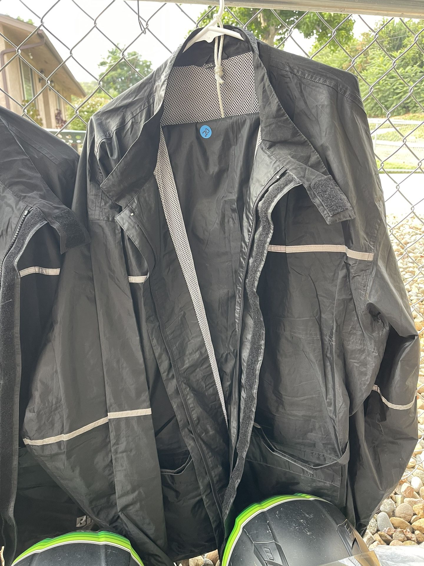 Rain suits, for motorcycle riding, or any application. One is size 5 extra L large and one is large. Get ready for winter