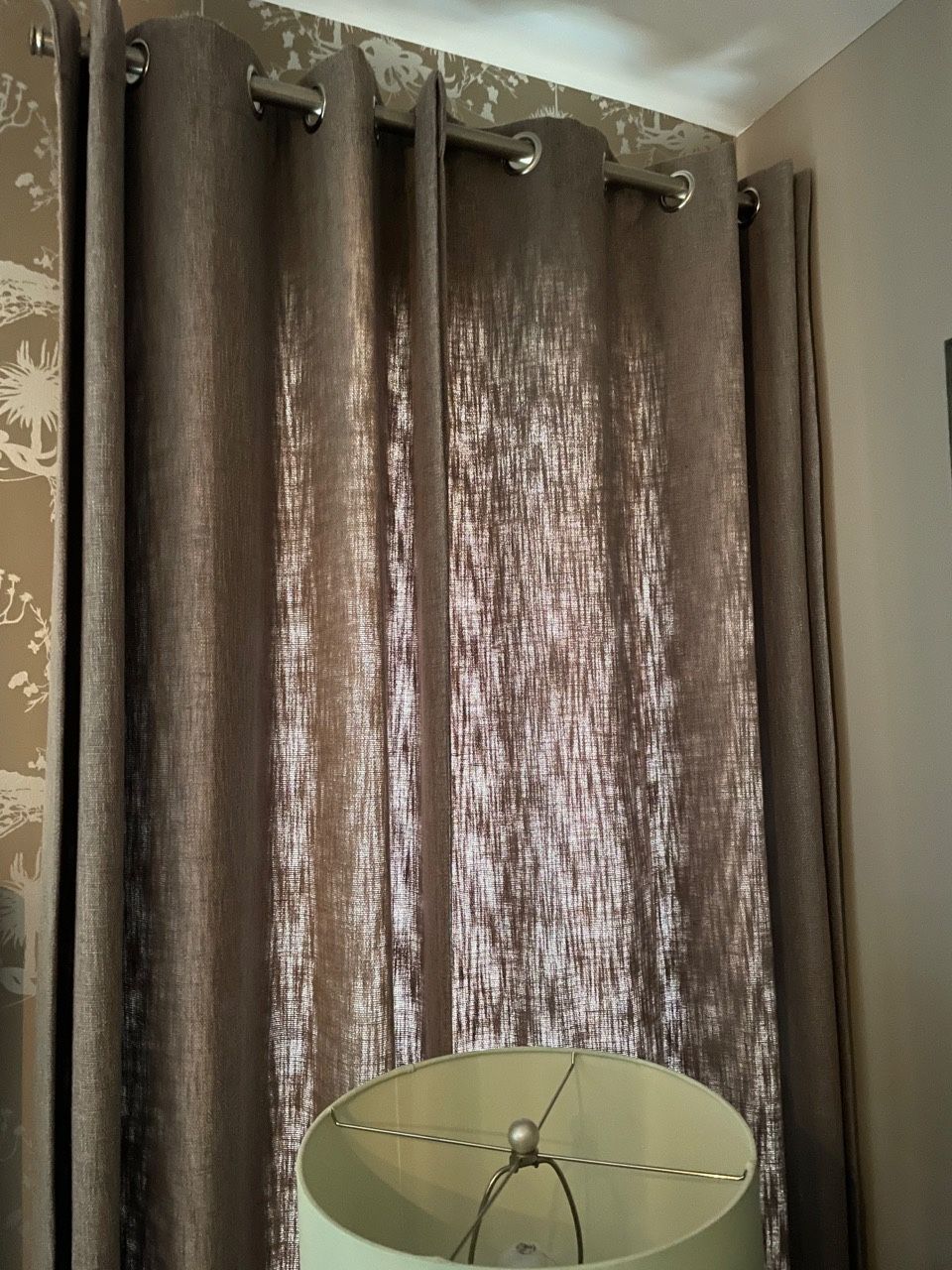 Very good condition, no stains, some fading. Heavy weight, linen like texture. They provided sufficient light blocking for me, even in the bedroom. Metal grommets Cotton, polyester blend Dry clean These retail for well over $100 a piece, selling for $25 each. 12 available.