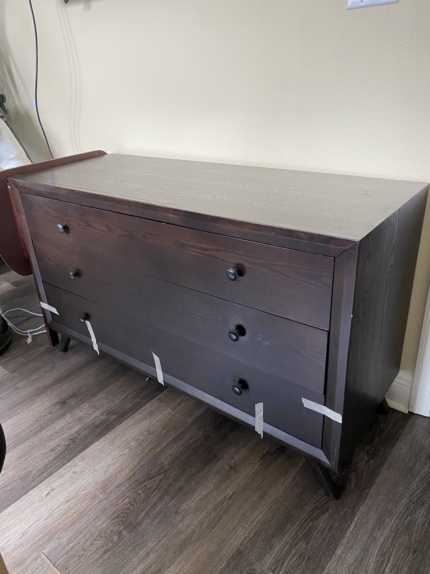 A matching Queen bed frame and 3-drawer dresser set, both made of sturdy wood. The bed frame offers a classic design that’s versatile for any bedroom, while the dresser provides ample storage with three spacious drawers. The set is approximately 6-7 years old but has been minimally used in the last 3 years, ensuring it remains in excellent condition. Features: • Queen-sized bed frame made from solid wood • 3-drawer dresser with clean, functional drawers • Simple, timeless design that suits a variety of bedroom styles • In excellent condition, gently used and well-maintained • mattress included