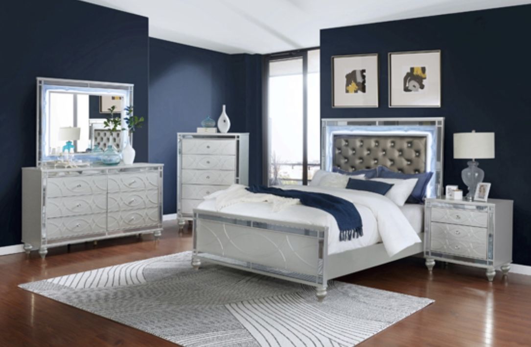 Brand New King Bedroom Set LED Lights ( Dresser Mirror Chest Nightstand And King Bed )