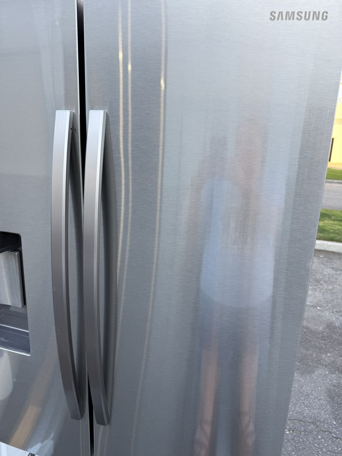 Samsung Fridge- need gone today! Moving & does not fit. Only a year old works great- super clean inside & out. No dents. Can help move. 69 in tall, 36 wide, 27.5 deep (counter depth). Ice maker works, water works, freezer bottom drawer.