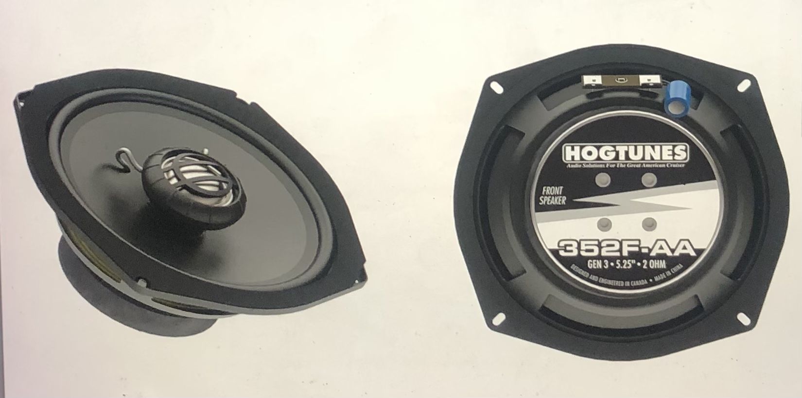 Selling new in box front speakers for Harley Davidson and other motorcycles with factory advanced audio radios or bikes with 2 ohm stable amplifiers 150W easy harness connectivity clear loud string sound better bass response from new woofer design 1” titanium tweeter results smooth sound sound is tailored to cut through exhaust and wind noise even at highway speed install using factory grills easy set up retail $130