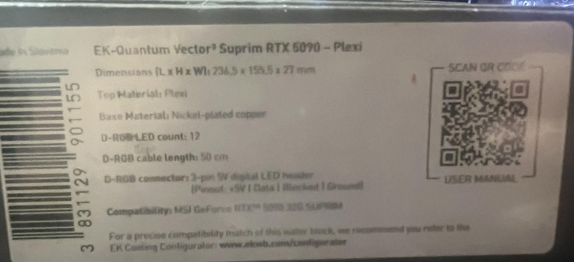 EKWB MSI Suprim RTX 5090 WaterBlock, Brand New, Sealed, Unopened. Cheapest Online, Which Normally Goes 4 $325.66 After Tax & Shipping.