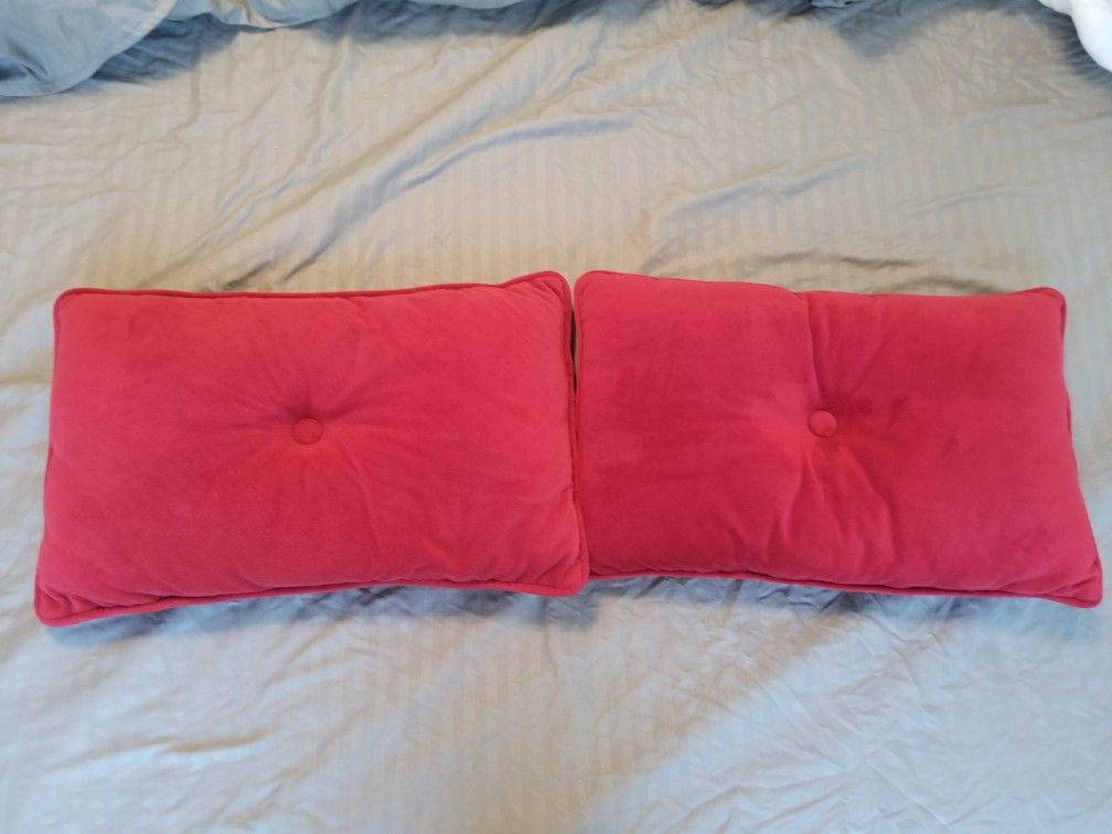 Set of 2 red plush throw pillows
