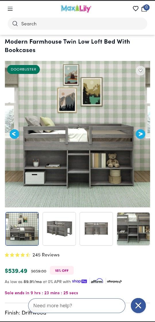 Hi everyone! I’m selling my son’s Max & Lily Modern Farmhouse Twin Low Loft Bed with Bookcases in the beautiful Driftwood finish. We bought it less than a year ago, set it up, and he never actually slept in it — so it’s truly like new. We’re only letting it go because we’re rearranging his room, and I’d love for another child to enjoy it. 💛 Why You’ll Love It Solid New Zealand Pine — super sturdy and safe Low loft height (great for younger kids) Built-in bookcases provide tons of storage Neutral modern farmhouse style fits any room Cozy kid cave/play nook underneath — perfect for reading, toys, pillows, or pretend play No scratches, no dents, no wear Comes from a smoke-free, pet-free home 🛏 Bonus: Free Brand-New Twin Mattress Included! We purchased the mattress separately and my son never slept on it. It’s completely brand new and included at no extra charge. 📏 Details Size: Twin Dimensions: 76.5” L x 47” W x 41.5” H Recommended mattress height: 5–8 inches Weight capacity: 400 lbs Manual included Bed will be disassembled for easy pickup 🧼 Condition: 10/10 — Assembled once, never used 💰 Price: $400 (OR BEST OFFER) (Retails $659 — currently $539.49 — and mattress was purchased separately) Trying to recoup a bit, but open to reasonable offers. 📍 Pickup Only – Waldorf, MD (20603) If you want more pictures, video, or measurements, I’m happy to send them. Hoping this beautiful bed finds a home where another little one can enjoy the cozy cave and storage space! 💛
