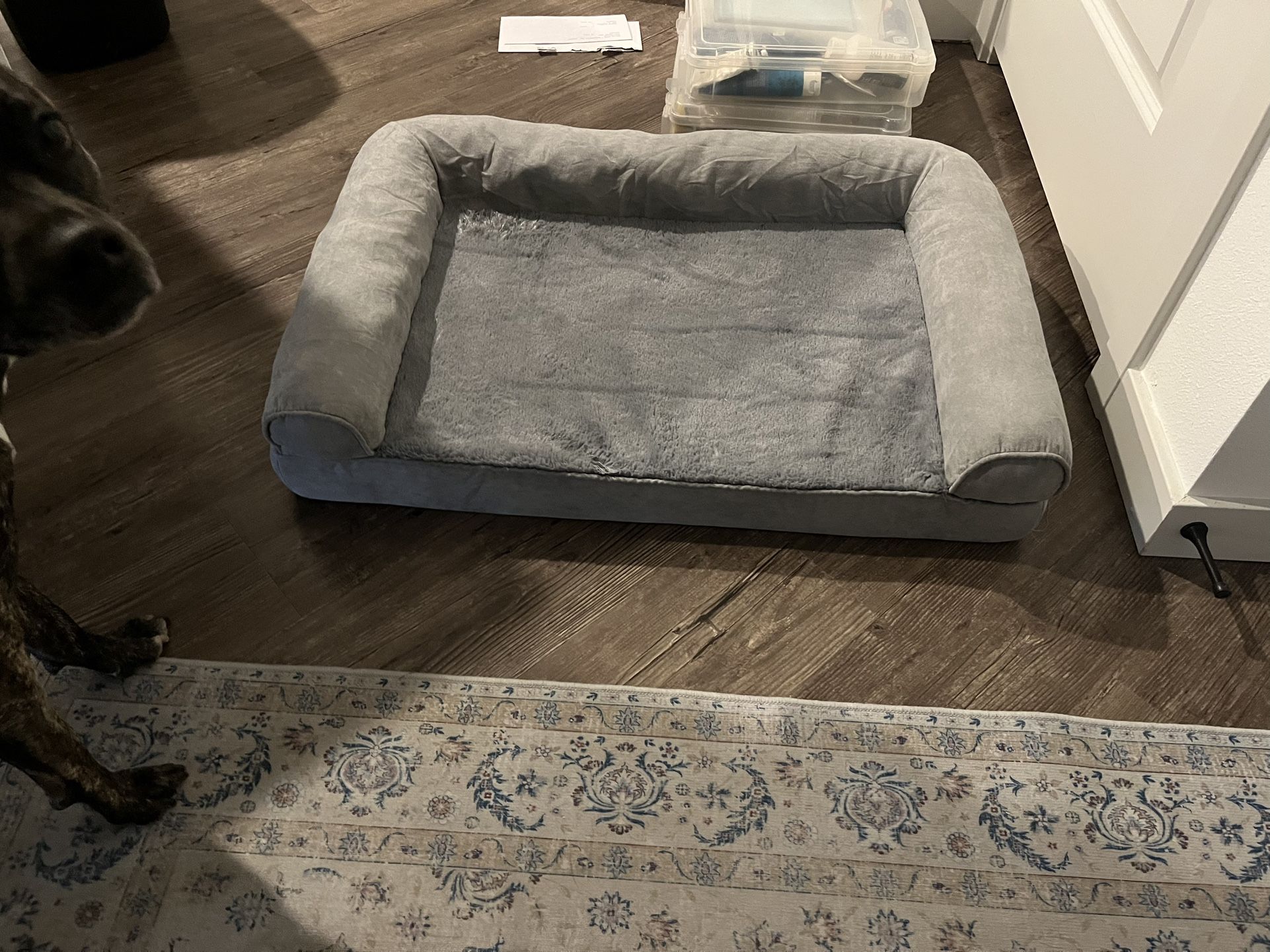Very nice dog bed that my dog apparently thinks she’s too good for. Had a couple months & she will not lay on it so it’s basically brand new & unused.