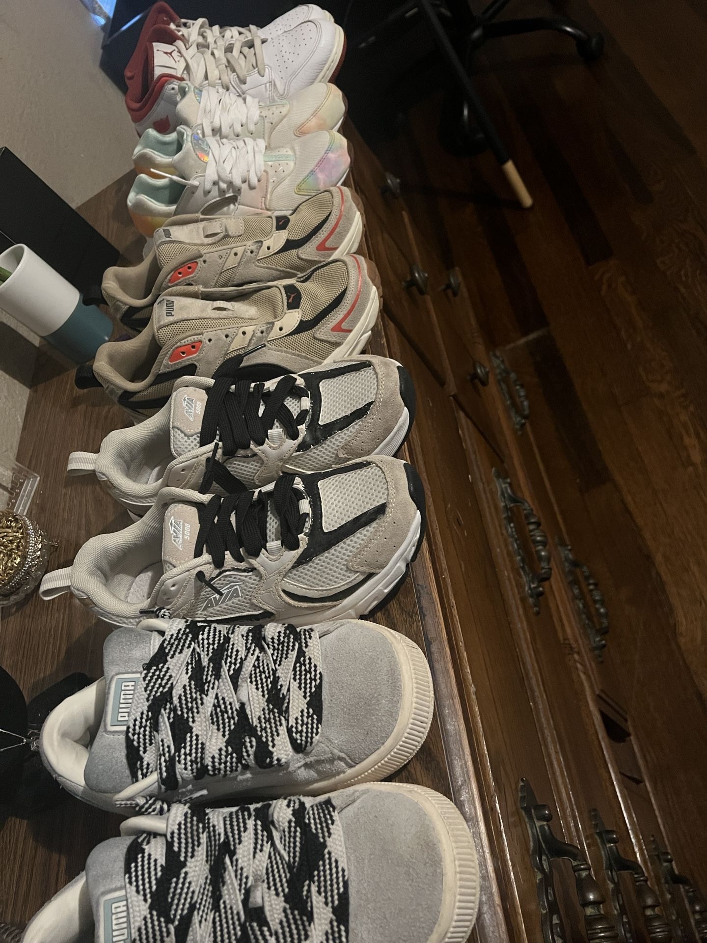 Used shoes but in good condition Pumas/jordans/nike Nike size 5.5 $45.00 Jordan's size 6.5 $45.00 Puma no shoelace size 5 $25.00 Wide puma size 6 $25.00 Avia Sodo size 6.5 $25.00