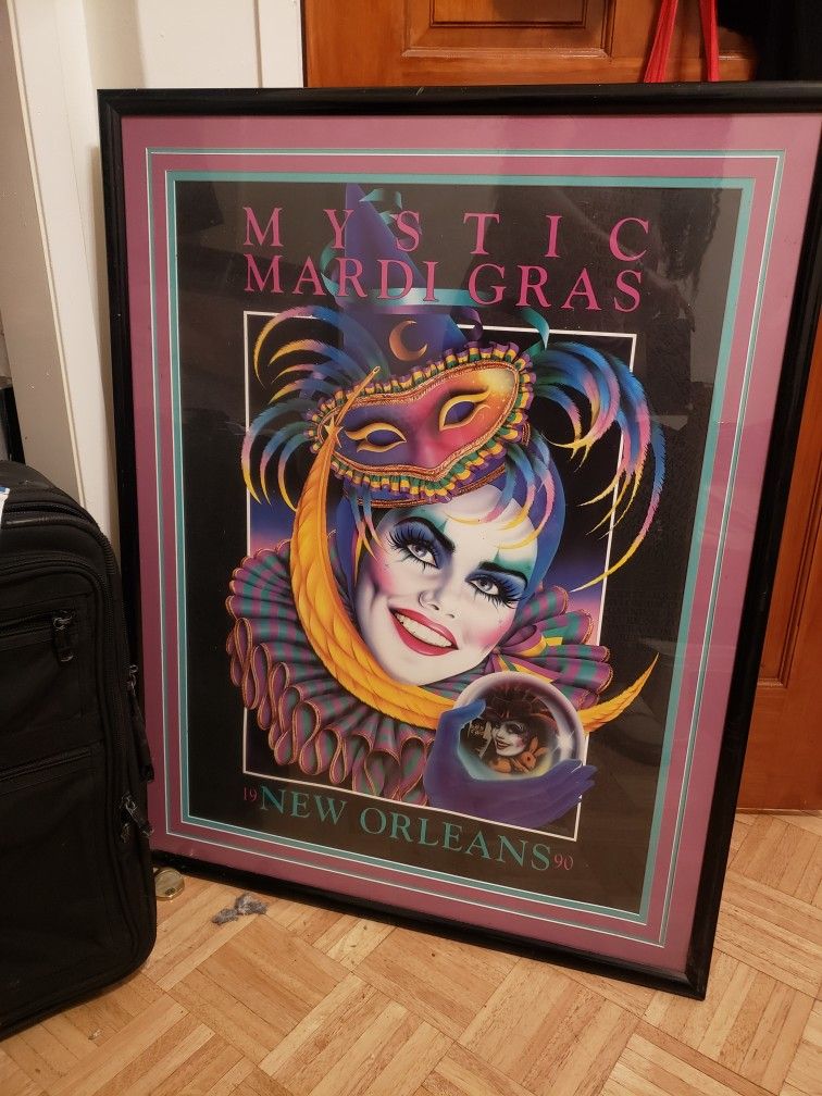 Beautifully framed Mardi Gras Poster 1990 Mystic Mardi Gras Andrea Mistretta Will accept a reasonable offer. No low-balling please.