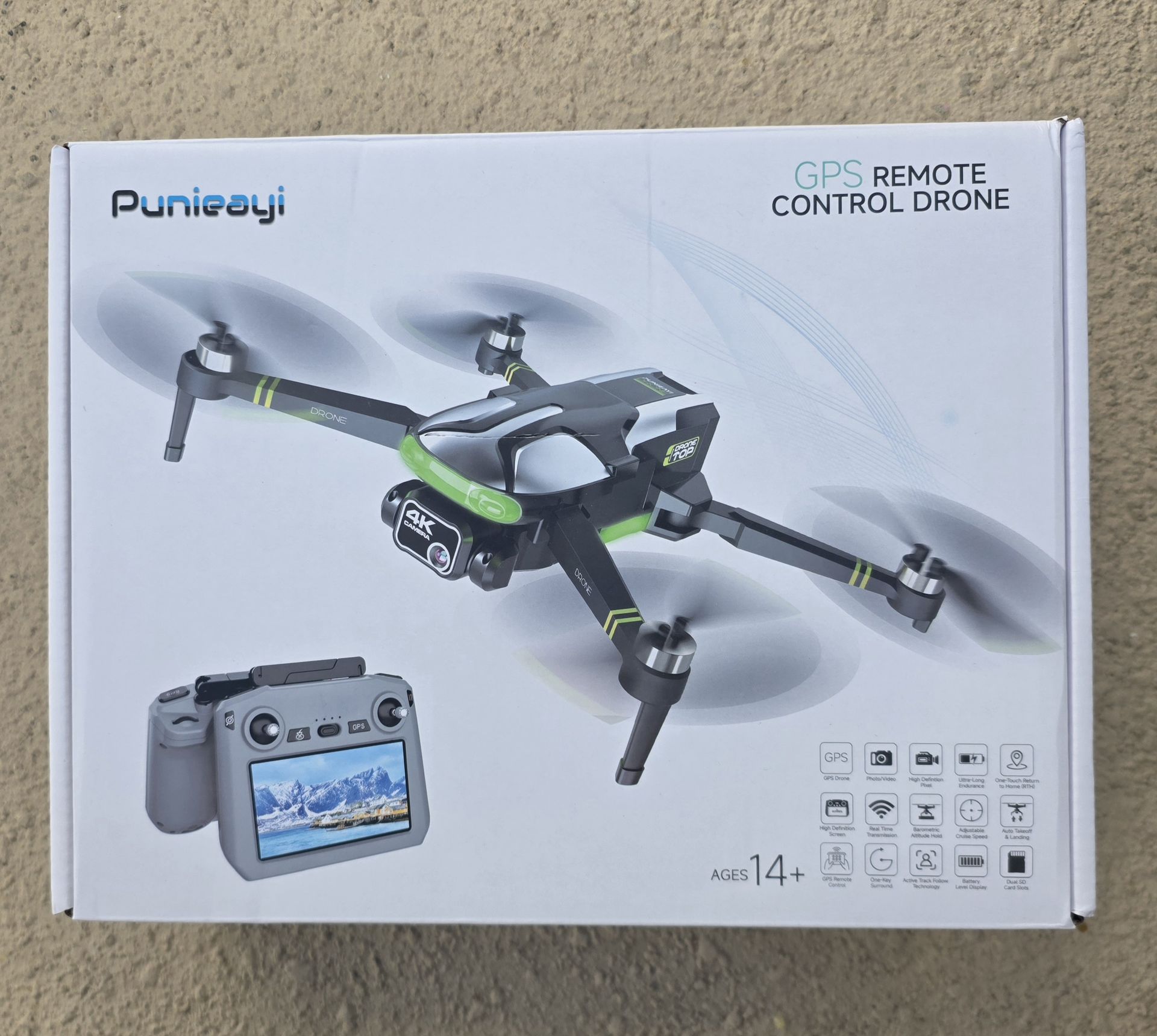 Pickup in Chula Vista, CA 91910 Cashapp, Venmo, or Zelle. Drone Description and Details: Punieayi ZY-90 PRO GPS Drone with 4K Camera, 100-Min Flight Time, 5.7" FPV Screen, Long Range Video Transmission, RC Quadcopter, GPS Follow, Auto Return, Beginner Mode, Foldable RC Drones with 2 Batteries. Details: Smart GPS with Auto Return: Designed for pilots of all skill levels, this FPV drone offers precise positioning for smarter operation. Key functions include One-key Return, low-power auto return, GPS lock, and compass calibration. Easily execute creative shots like Rocket, Helix, Follow, and Circle Fly, enabling reliable performance in various environments 4K Camera with 90° Adjustment: Equipped with a 4K and 90° adjustable lens, this camera drone captures enhanced 2K@30fps video and 3840×2160 photos. Its Level 4 wind resistance and powerful brushless motors ensure smooth footage even in windy conditions. 5.7-Inch LCD Display: This ZY90 PRO drone features a 5.7-inch LCD display remote controller , providing instant FPV live feed without the need for a smartphone app. It supports long-range transmission of up to 6,500 feet, offering an immersive flying experience with real-time photo/video preview. An ideal choice for both creators and beginners 100-Minute Extended Flight: Powered by (2) 7.4V 3500mAh visible-power batteries, this drone delivers up to 100 minutes of total flight time. Supports USB-C fast charging for added convenience and uninterrupted fun. *Please ensure the drone is fully charged to 100% before each flight. Built-in Composition Guides: Utilize a suite of on-screen visual guides to achieve professional shots effortlessly. Choose from Diagonal Lines for dynamic angles, a Center Dot for precise symmetry, or a 3x3 Grid to master the rule of thirds. These tools empower both beginners and pros to compose stunning imagery with every flight Beginner-Friendly Assisted Flight: Features One-key takeoff/landing and speed switch to help new pilots fly with confidence. Set altitude/distance limits or activate beginner mode for added safety. An ideal starting GPS drone with 4K camera for novice users. Access tutorial video guides and enjoy comprehensive operational teaching