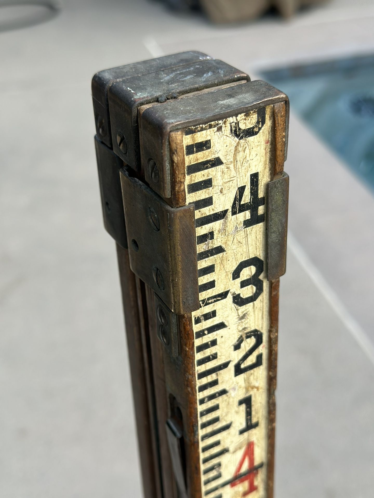 Surveyor's Measuring Stick - vintage wood and brass ruler LARGE; Sculptural wall hanging