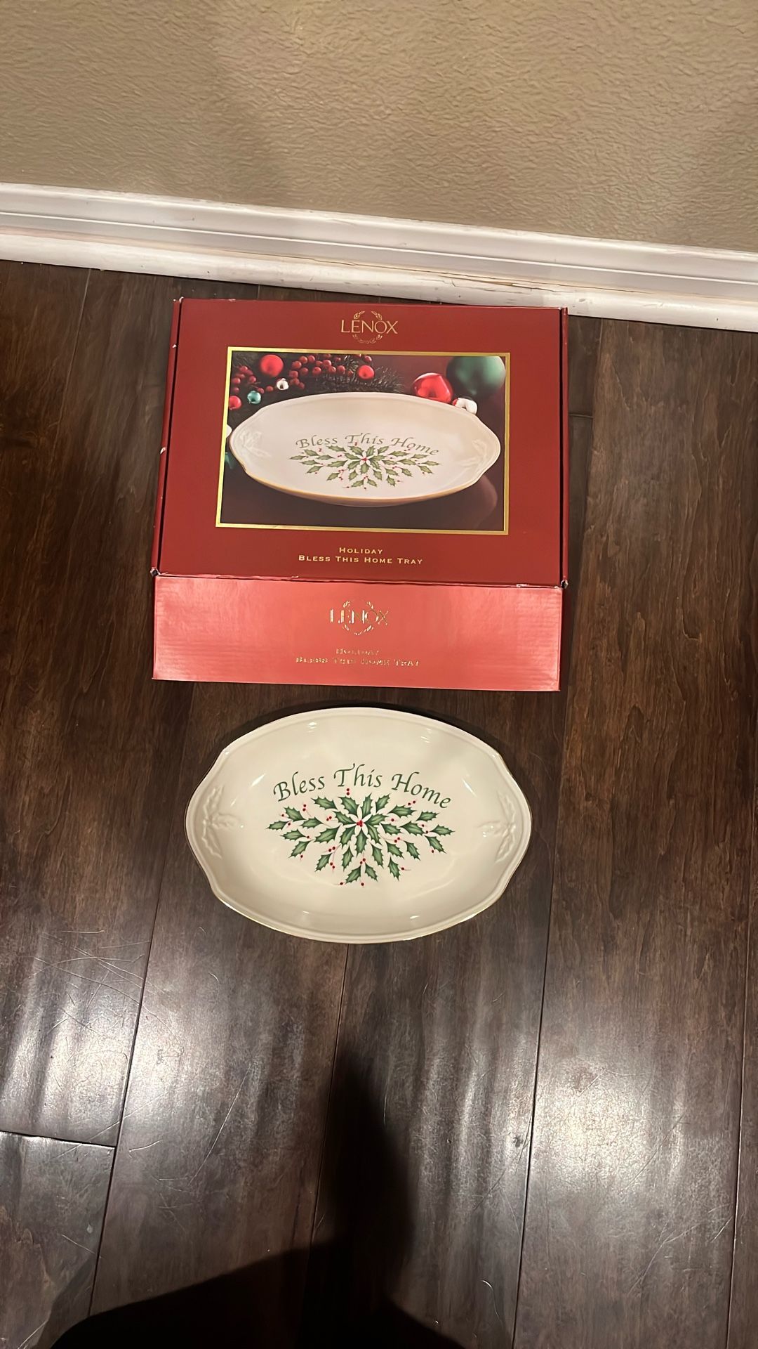 Beautiful brand new, in box, never used Lenox Holiday “Bless This Home” Tray measuring 11 by 7 1/2 inches