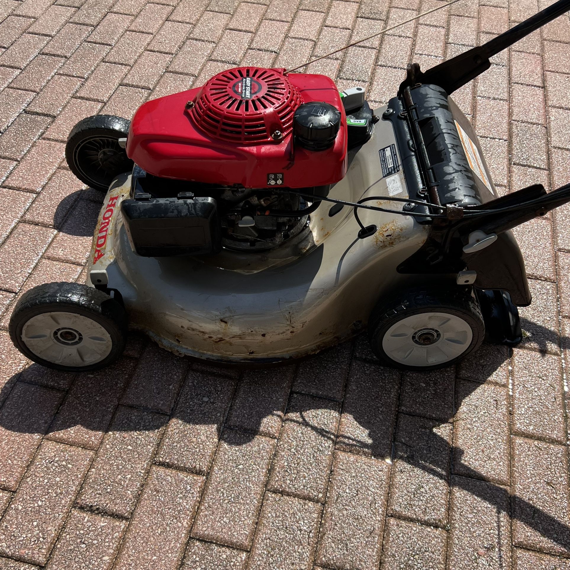 Honda mower Works, needs new pull string , oil change. Has 2 new tires on it. FOR PARTS OR REPAIR AS IS
