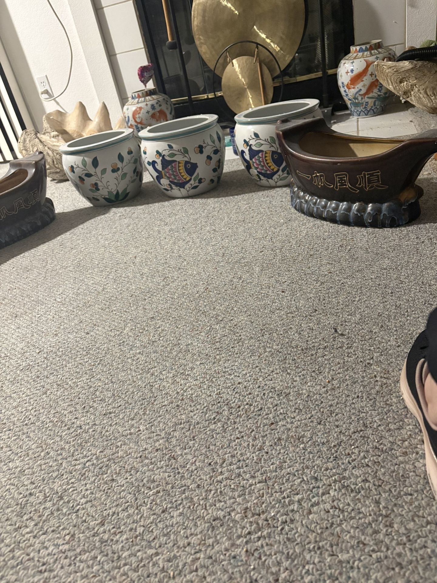 3 Fish pots and 2 Chinese boats pots. Beautiful for your garden or outside patio never used All for 55. Dollar’s !!!!!!!!