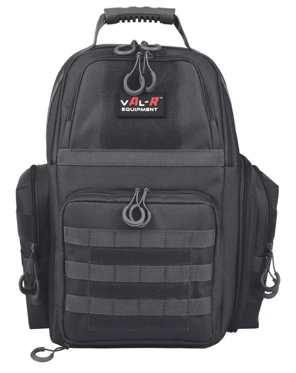 Val-R Tactical Pistol Range Backpack - Heavy Duty Shooting Range Bag with Internal Frame, Multi-Pistol Storage, Integrated Rain Cover and Lockable Zippers for Handguns and Ammo - Color: Black