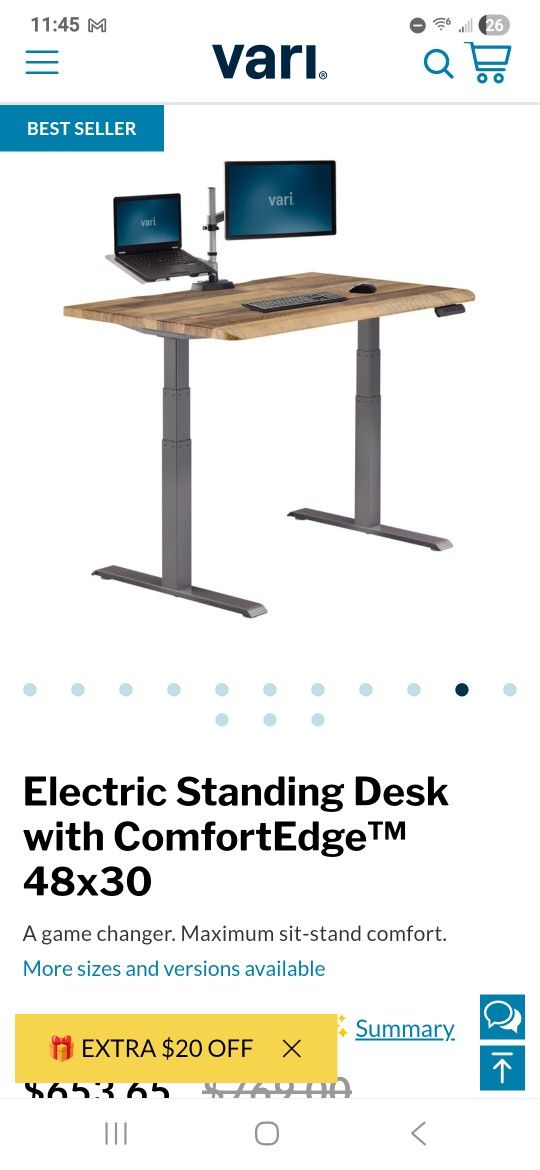 Brand new. Never opened in-box electric Vari Desk with flex monitor arm. Desktop is reclaimed wood with slate legs. Measures 48x30 inches. See website at https://offerup.com/redirect/?o=aHR0cHM6Ly93d3cudmFyaS5jb20vZWxlY3RyaWMtc3RhbmRpbmctZGVzay13aXRoLWNvbWZvcnRlZGdlLTQ4eDMwL0ZELUVTRENFNDgzMC5odG1sP2R3dmFyX0ZELUVTRENFNDgzMF9jb2xvcj1yZWNsYWltZWQtd29vZA==