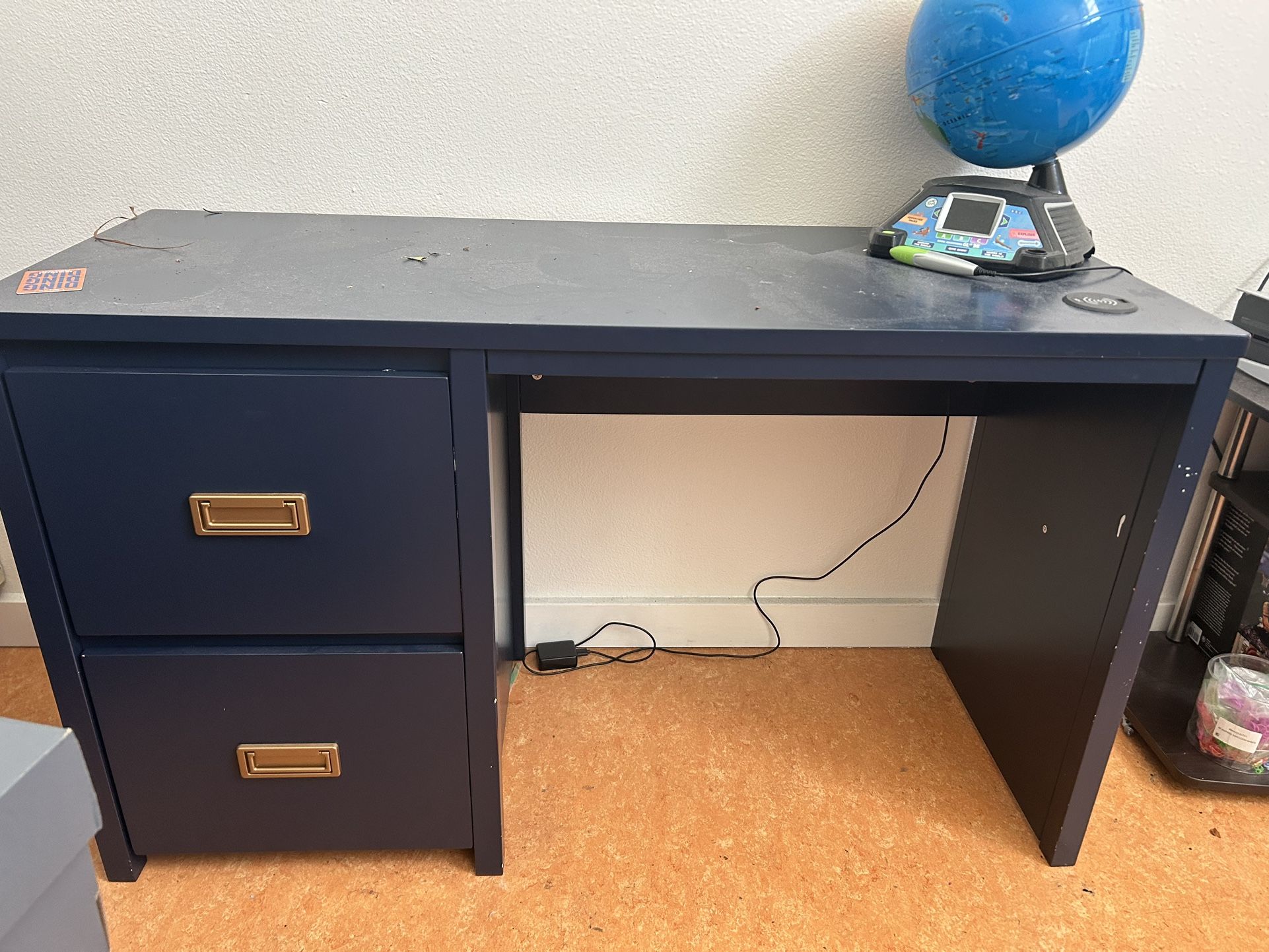 Navy Blue Desk with 2 large drawers. Gold handles. Like new
