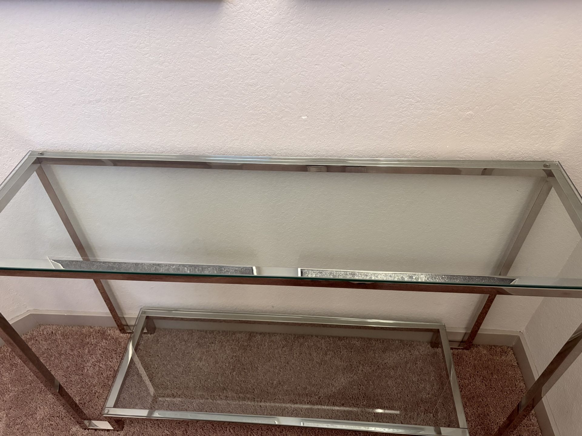 Silver/chrome console table with glass tops I do not know the measurements:( Good shape, nothing wrong with it
