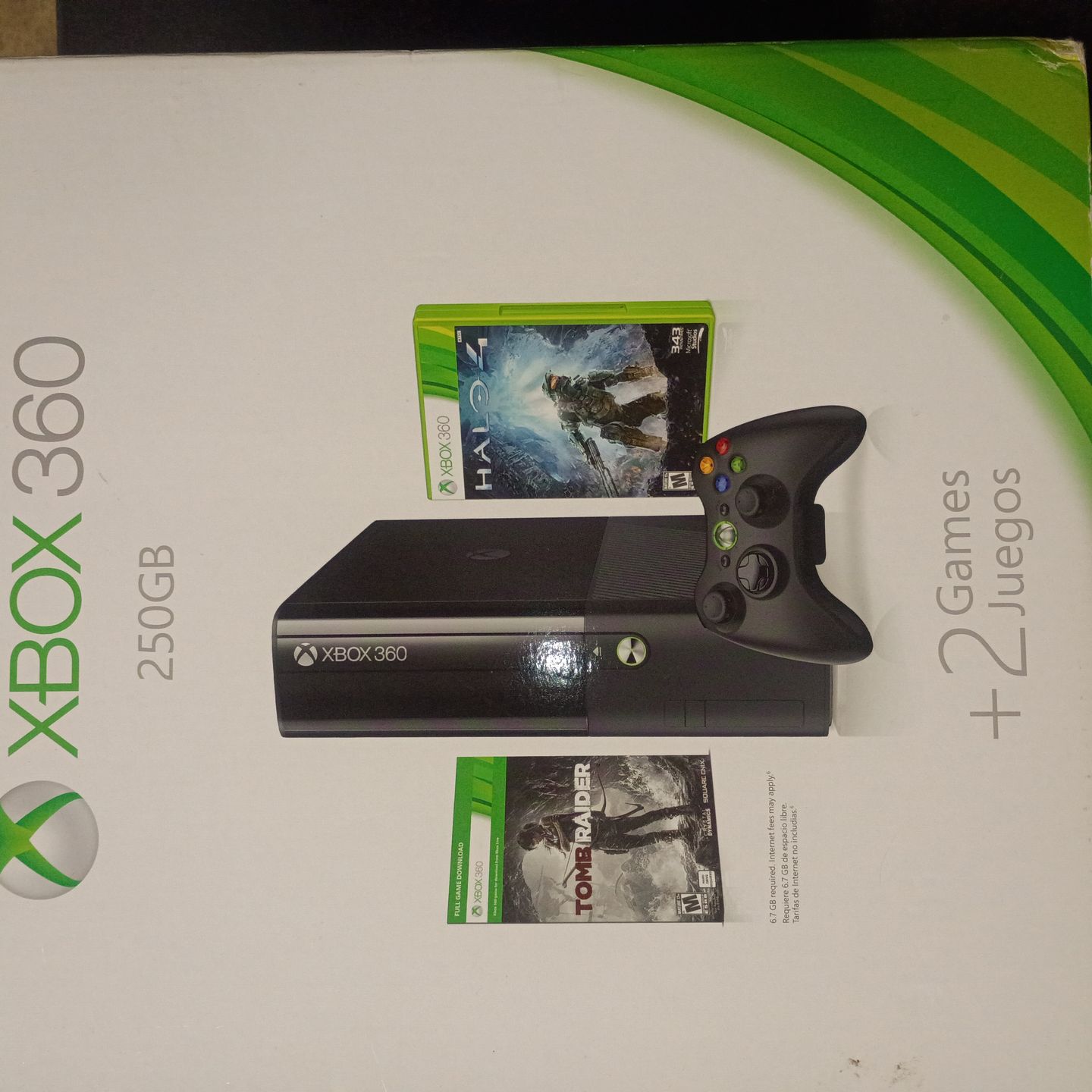 Xbox 360 250 gb black +2 digital copy games +extra games