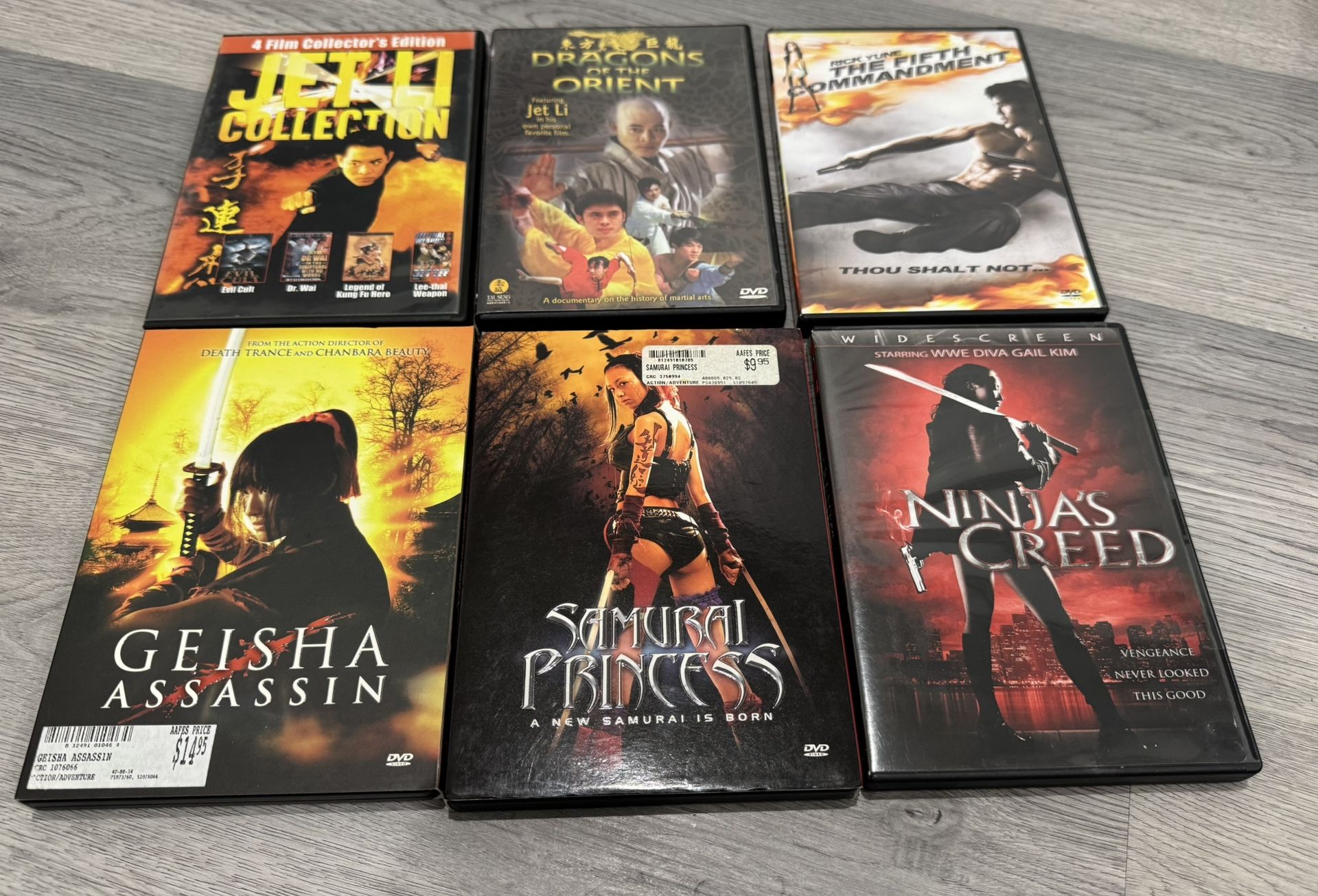 DVD martial arts movie lot. Includes Jet Li Collection, Ninja, Samurai and more. Good condition Pickup South Tacoma