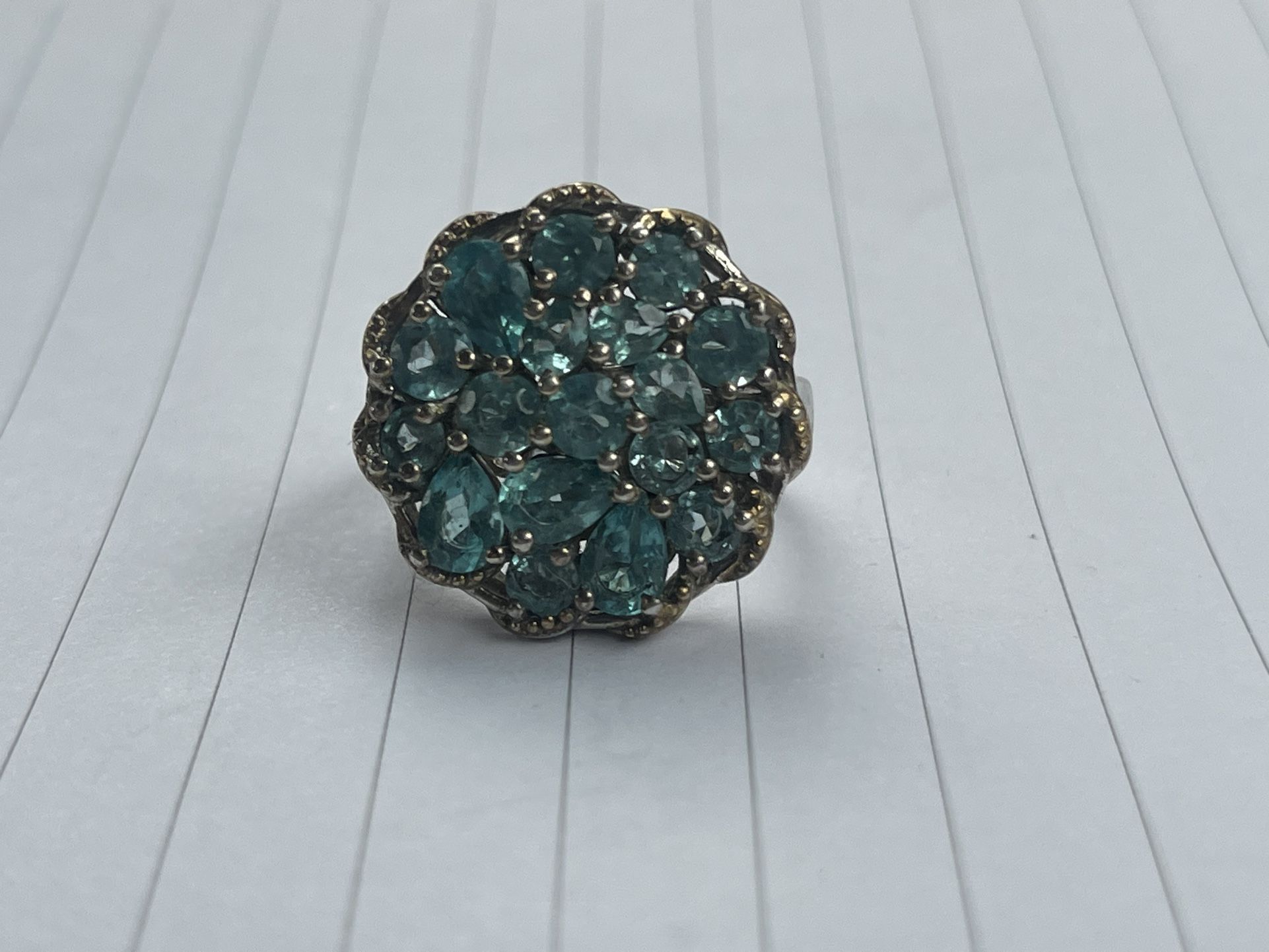 ''DYACH'' INDIA WHITE GOLD & BLUE TOPAZ CLUSTER RING SIZE 7.25